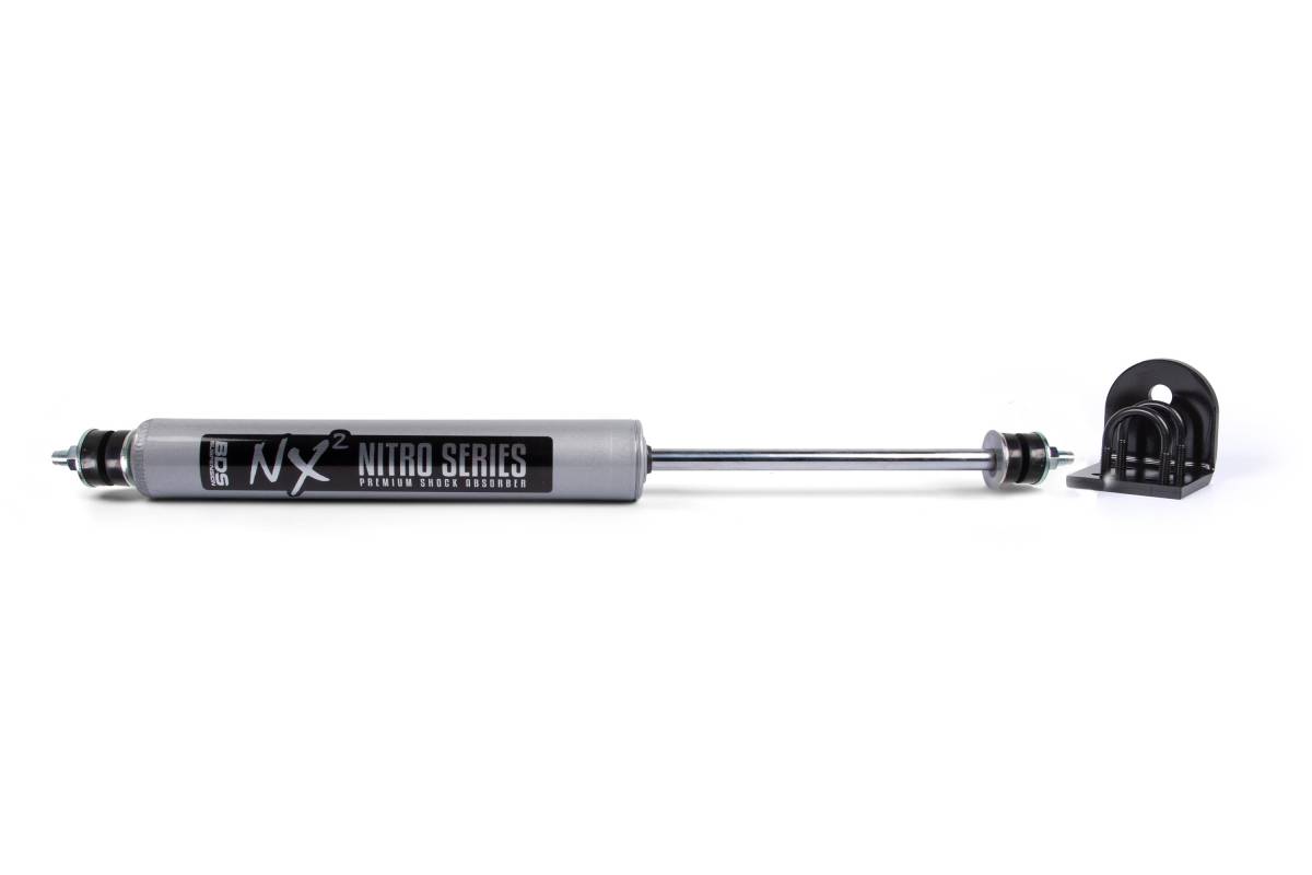 Enhance the handling of your 1980–1996 Ford F150 and Bronco 4WD with a BDS single steering stabilizer mounting kit paired with an NX2 shock. Installing larger tires can exert additional force on your truck's suspension; steering stabilizer shocks effectively reduce bump steer and steering wheel feedback. BDS mounting brackets are constructed of high-strength steel and bolt on easily. Used alongside a BDS lift kit, a steering stabilizer kit can help extend the lifespan of factory steering components.