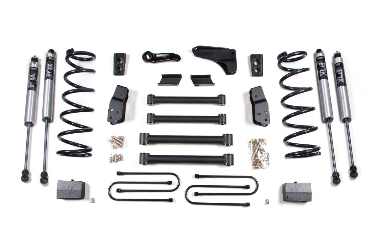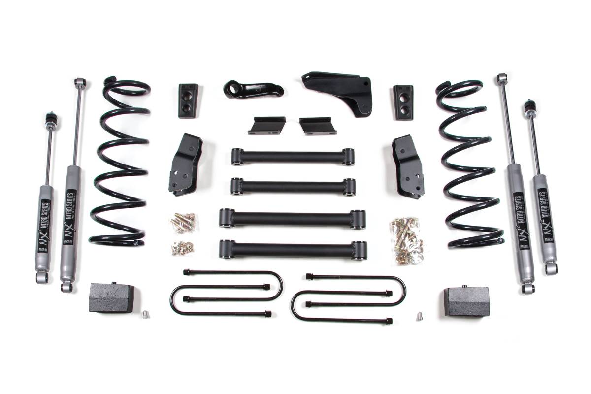 This 6-inch lift kit from BDS Suspension is designed for 2009–2013 Dodge RAM 2500 and 3500 4WD gas-powered trucks. The kit improves stance, performance, and capability, providing clearance for up to 36-inch tires. BDS-engineered new lower control arms are longer than stock to rotate the axle for proper alignment, and a relocation mounting bracket flattens the angle of the upper control arm to maintain factory handling characteristics.