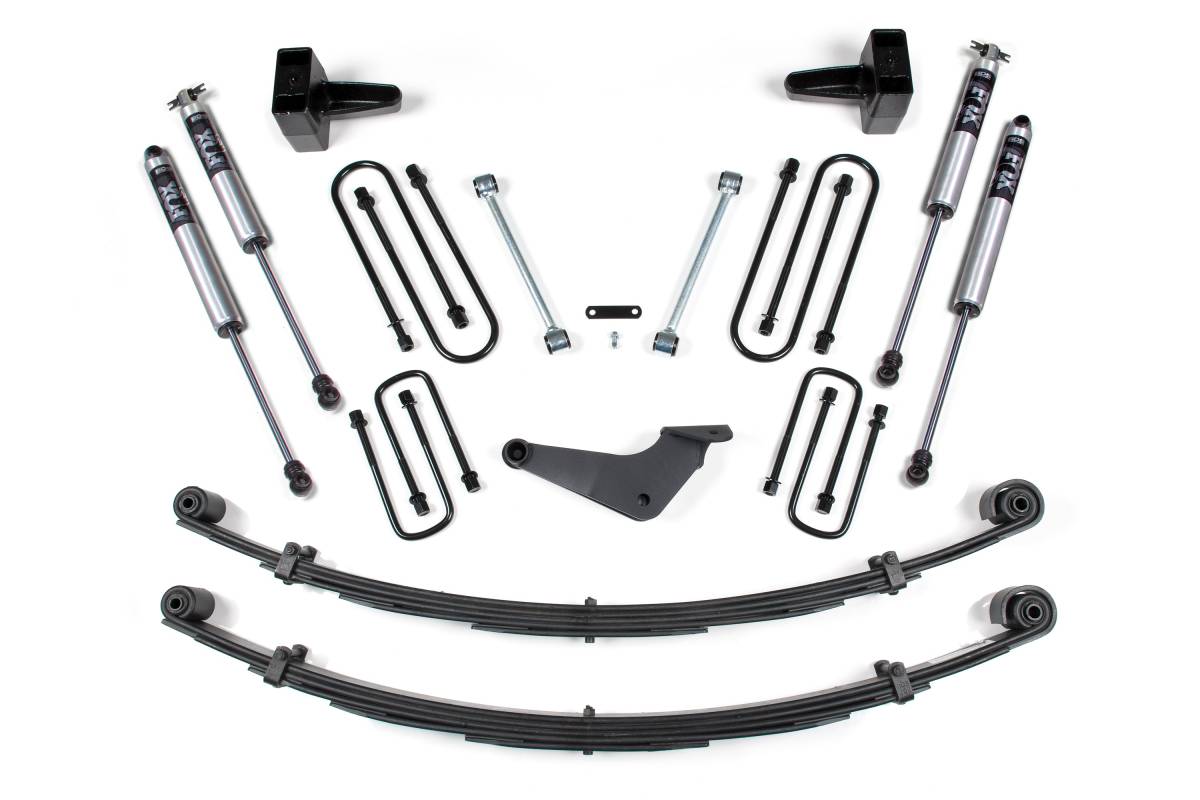 This 4-inch lift kit from BDS Suspension is designed to improve the stance, performance, and capability of the 2000–2005 Ford Excursion 4WD, providing clearance for up to 33-inch tires. Up front, the kit includes Glide-Ride leaf springs, a track bar bracket for steering correction, extended sway bar links, and custom-tuned nitrogen charged shocks. The rear utilizes high-strength lift blocks or Glide-Ride leaf springs (depending on selected option), longer U-bolts, and a matched set of shocks. BDS engineered the Glide-Ride leaf springs into a multi-leaf progressive spring rate design with an exclusive triple-stage construction that provides a smooth ride under any load while maintaining factory payload weight ratings.
