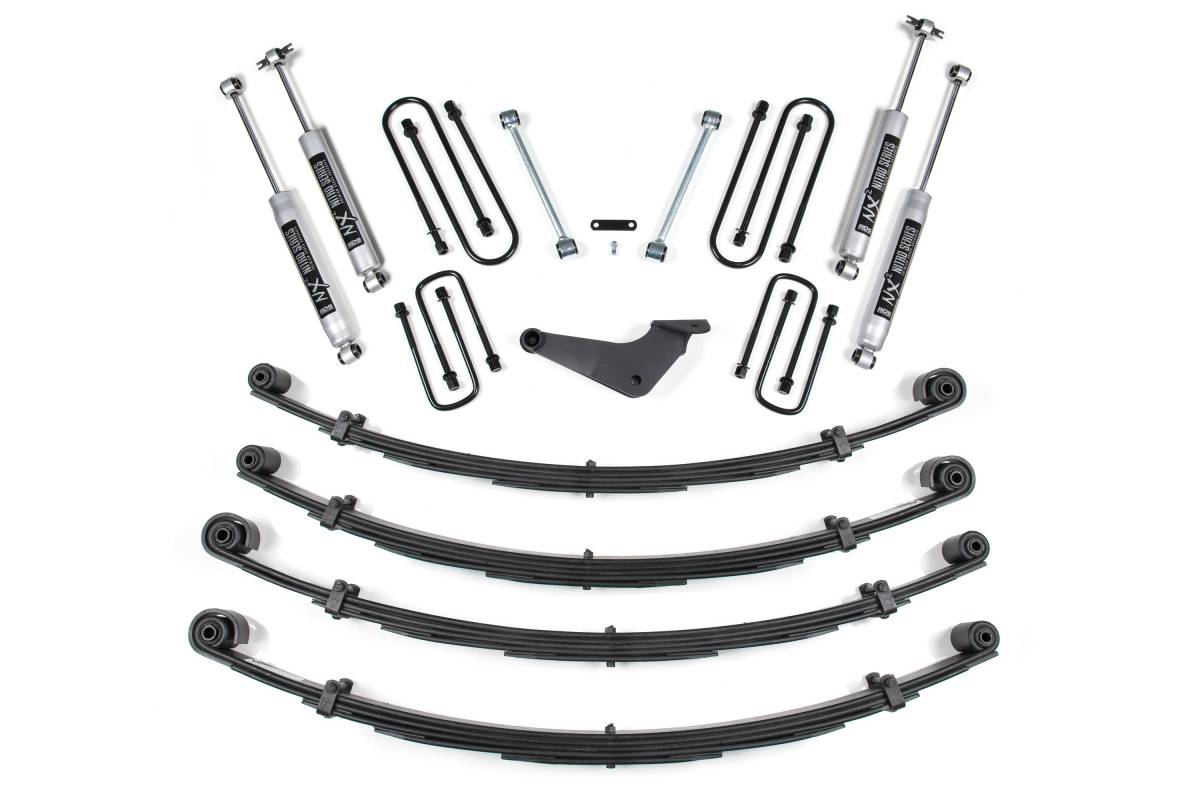 This 4-inch lift kit from BDS Suspension is designed to improve the stance, performance, and capability of the 2000–2005 Ford Excursion 4WD, providing clearance for up to 33-inch tires. Up front, the kit includes Glide-Ride leaf springs, a track bar bracket for steering correction, extended sway bar links, and custom-tuned nitrogen charged shocks. The rear utilizes high-strength lift blocks or Glide-Ride leaf springs (depending on selected option), longer U-bolts, and a matched set of shocks. BDS engineered the Glide-Ride leaf springs into a multi-leaf progressive spring rate design with an exclusive triple-stage construction that provides a smooth ride under any load while maintaining factory payload weight ratings.