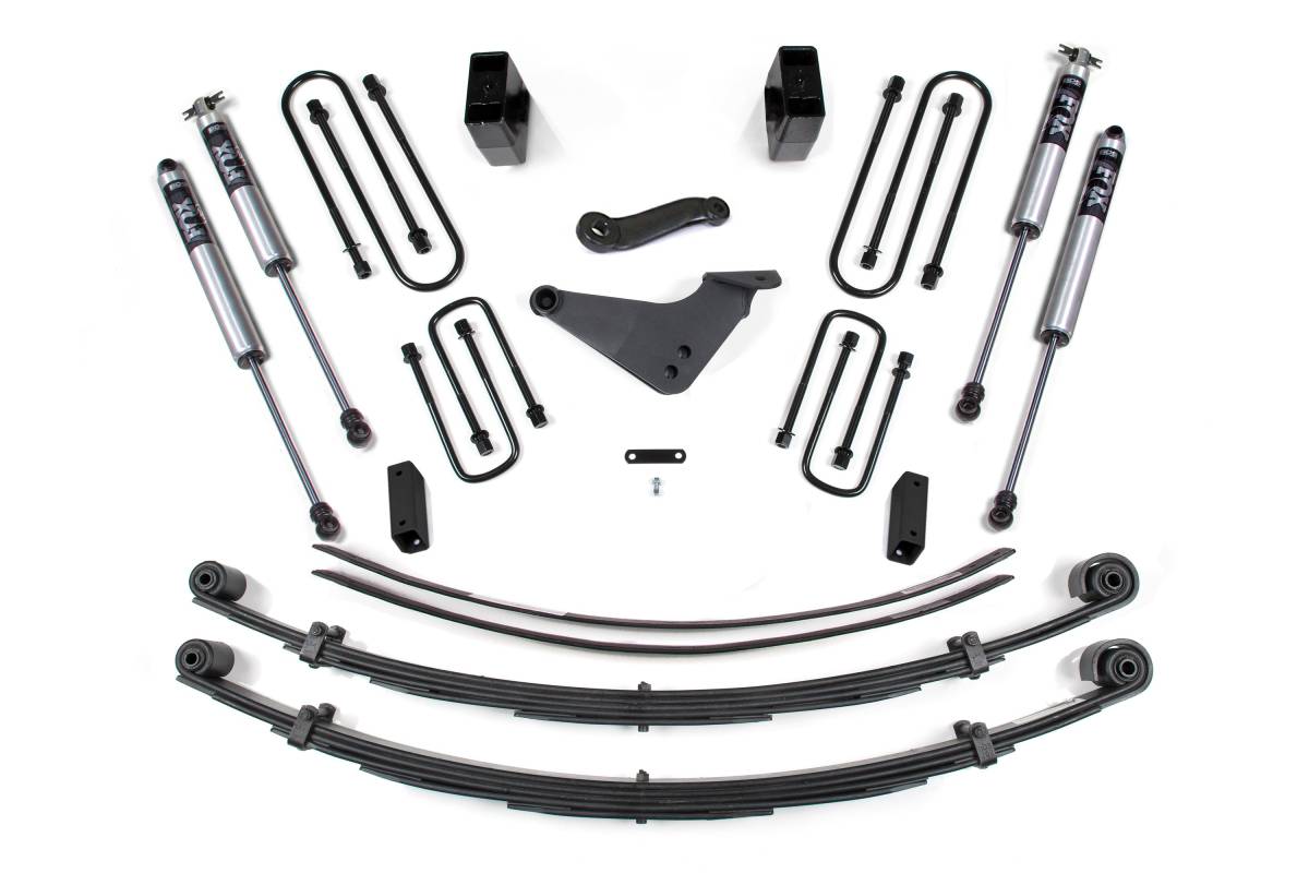 This 6-inch lift kit from BDS Suspension is designed for 2000–2005 Ford Excursion 4WD models, improving stance, performance, and capability while providing clearance for tires up to 35 inches. Up front, the kit includes Glide-Ride leaf springs, a forged drop pitman arm, a track bar bracket for steering correction, sway bar links, and bump stop brackets. In the rear, the kit uses a high-strength lift block, longer u-bolts, and matching shocks. Shock and rear lift configurations are available in multiple options to suit different needs and budgets.