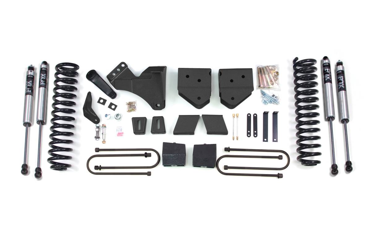 This 6-inch lift kit from BDS Suspension is designed for 2005–2007 Ford Super Duty F250 and F350 gas trucks. The kit provides improved stance, performance, and capability with clearance for up to 37-inch tires. Up front, it includes gas-specific Pro-Ride coil springs, heavy-duty radius arm drop brackets, a forged drop pitman arm, a track bar bracket for steering correction, sway bar relocation, brake line brackets, and custom-tuned nitrogen-charged shocks. In the rear, the kit utilizes high-strength lift blocks, longer U-bolts, brake line brackets, and a matched set of shocks — with rear lift options available in block kits or leaf springs depending on your truck's configuration.