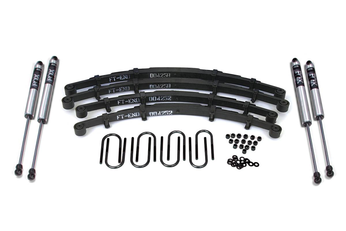 Configured with FOX 2.0 Performance Series gas shocks featuring a 2-inch impact extruded aluminum body, internal floating piston (IFP) monotube design, CNC machined 6061-T6 aluminum mounting ends, a massive 5/8-inch hard chrome plated heat-treated alloy steel shaft, race-developed high-flow piston design, application-specific valving to maximize performance, and a long-lasting clear anodized finish.