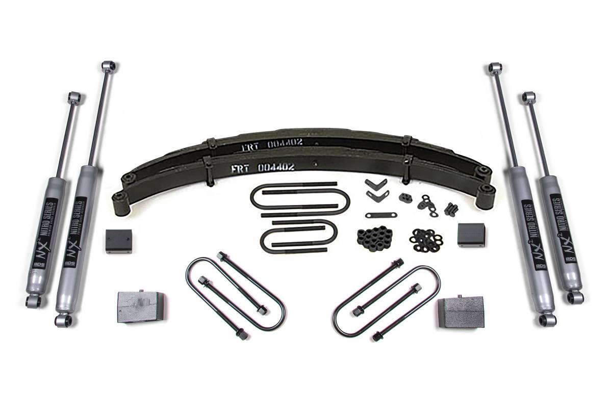 This 4-inch lift kit from BDS Suspension is designed for the Jeep Cherokee SJ Full Size, Wagoneer, Grand Wagoneer, and J10/J20 (1974–1989). The kit is engineered to improve stance, performance, and off-road capability, providing clearance for tires up to 33 inches. Up front, the kit includes Glide-Ride leaf springs, brake line brackets, and precision-tuned NX2 nitrogen charged shocks. The rear configuration is available with either a high-strength lift block with longer u-bolts or rear leaf springs, both paired with matching NX2 Nitro shocks.