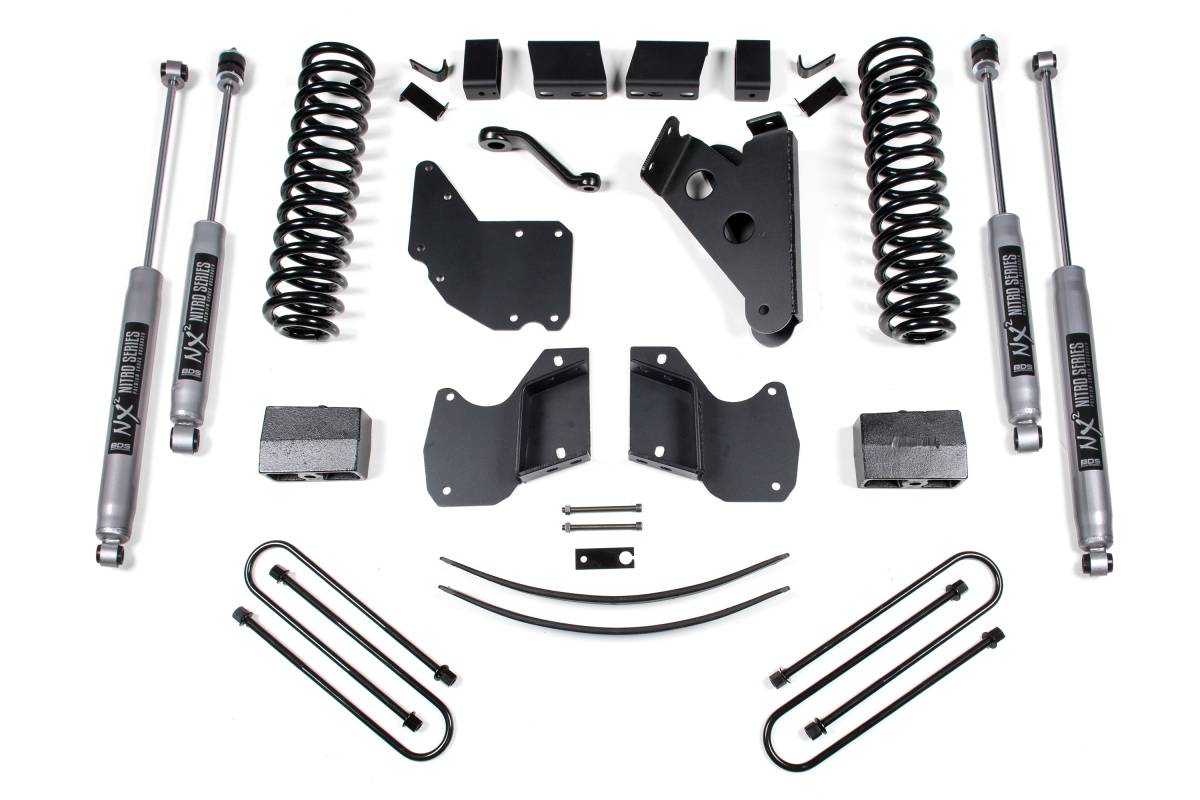 Improve the ride and stance of your 1983–1997 Ford Ranger 4WD with this 6-inch suspension lift kit from BDS Suspension. Designed to improve stance, performance, and off-road capability, this kit includes everything needed to properly lift your truck and provide clearance for up to 33-inch tires. Up front, the kit features Pro-Ride coil springs, heavy-duty axle pivot brackets, radius arm drop brackets, a forged pitman arm for steering correction, bump stop extensions, and precision-tuned NX2 nitrogen-charged shocks. The rear utilizes a high-strength lift block, longer U-bolts, and a matching set of NX2 Nitro shocks.