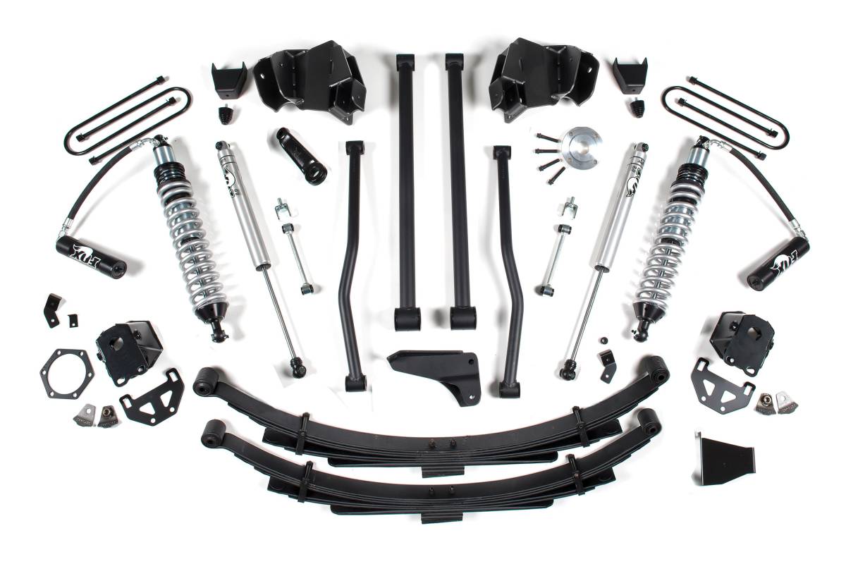 This 8-inch lift kit with long arm and FOX 2.5 coil-over conversion from BDS Suspension is designed for 2009–2013 Dodge RAM 2500 4WD diesel trucks. The kit improves stance, performance, and capability while providing clearance for up to 38-inch tires. BDS developed a mounting system that bolts directly to the factory coil mounts with only minor trimming and drilling required, along with weld-in reinforcements at the axle for superior strength.