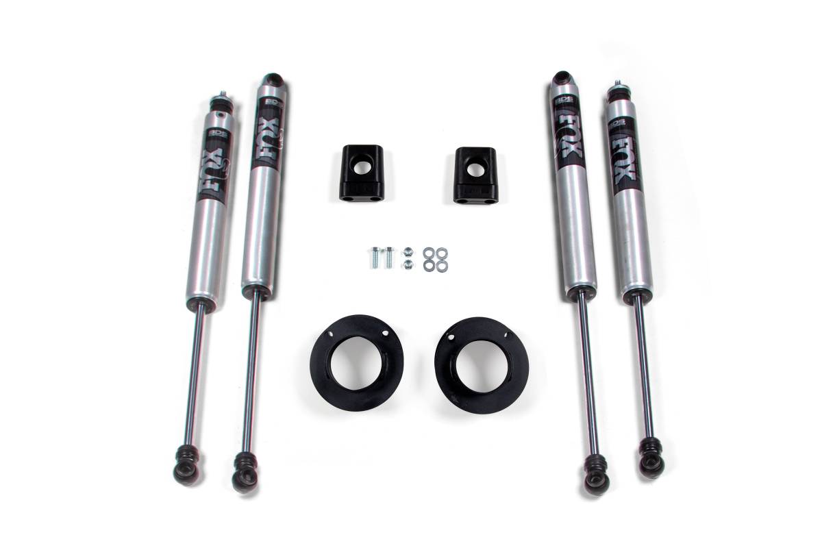 Configured with FOX 2.0 Performance Series shocks, this kit features a 2-inch impact extruded aluminum body, internal floating piston (IFP) monotube design, CNC machined 6061-T6 aluminum mounting ends, a massive 5/8-inch hard chrome plated heat-treated alloy steel shaft, race-developed high-flow piston design, application-specific valving for maximum on- and off-road performance, and a long-lasting clear anodized finish.