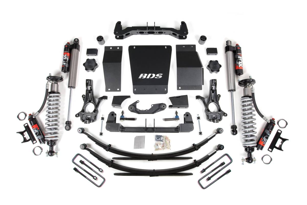 The BDS 6-inch lift kit for the 2014–2018 Chevy Silverado and GMC Sierra 1500 4WD is engineered to improve stance, ground clearance, and off-road capability while supporting fitment of up to 35-inch tires. The kit employs BDS's high-clearance design to improve strength and off-road protection and corrects suspension and steering geometry for proper on-road handling at the new ride height.
