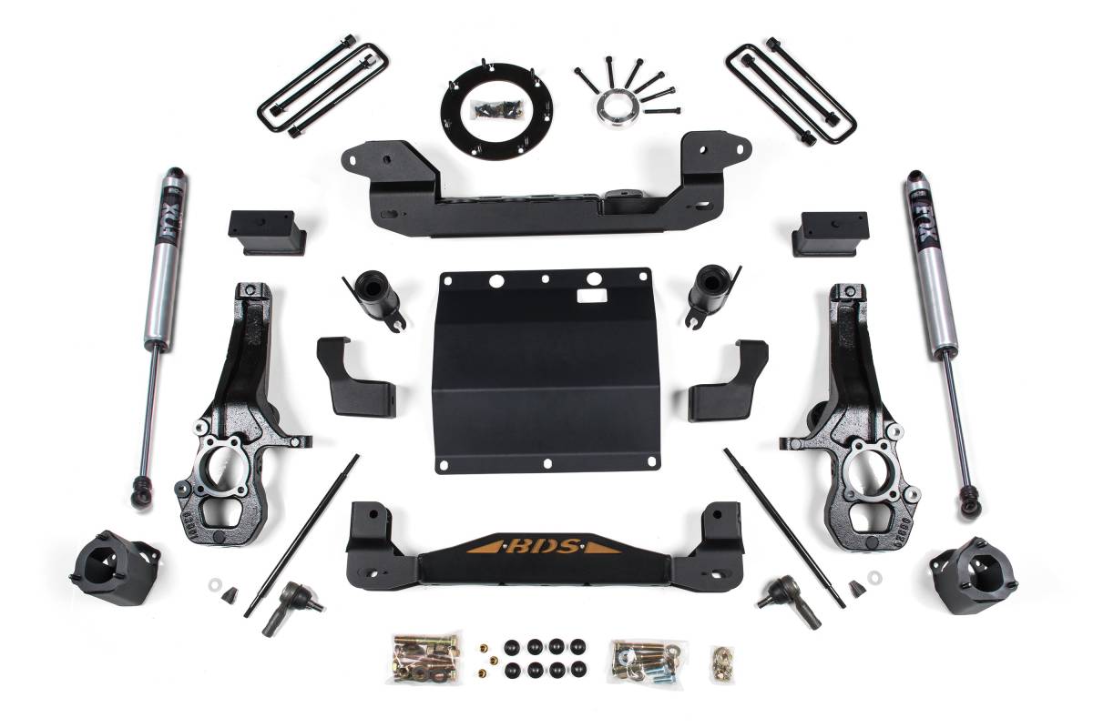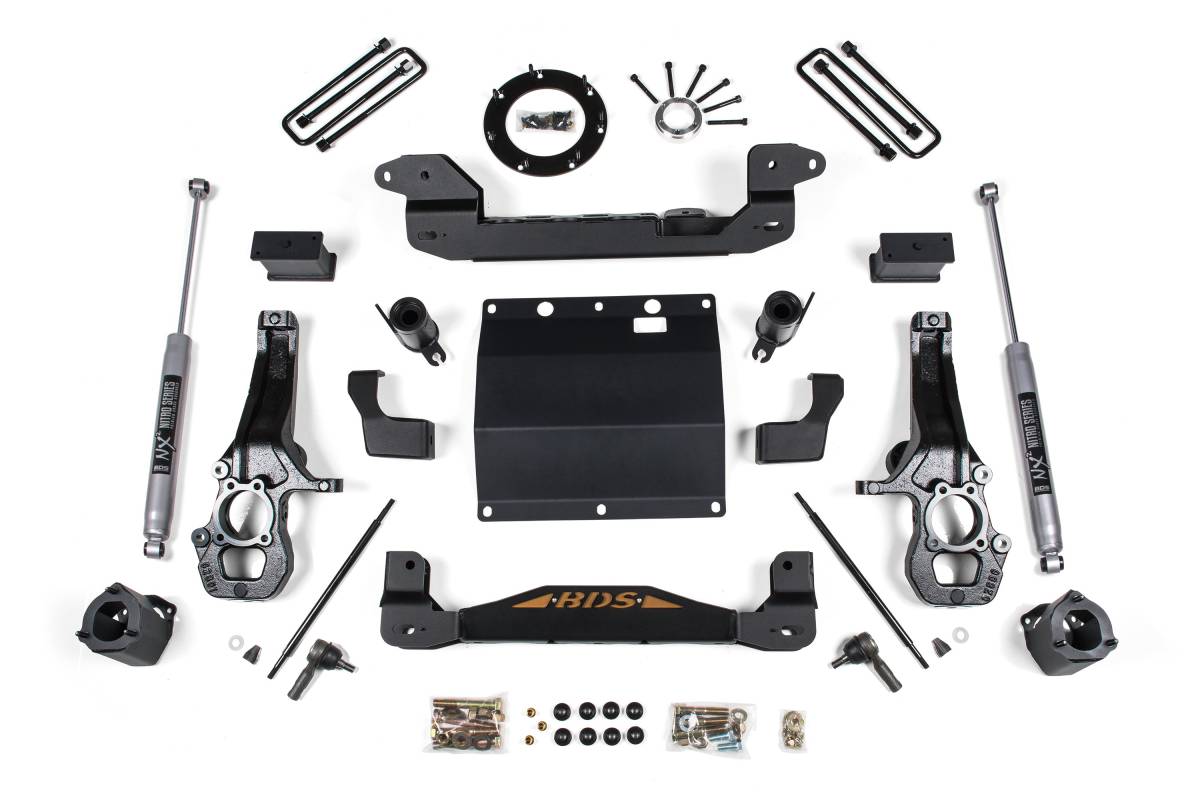 This 5.5-inch suspension lift kit by BDS is designed for 2015–2022 Chevy Colorado and GMC Canyon 4WD trucks. The kit improves stance, performance, and capability while providing clearance for up to 33-inch tires. It utilizes a high-clearance design to improve ground clearance, strength, and off-road protection, while correcting suspension and steering geometry for proper on-road handling.