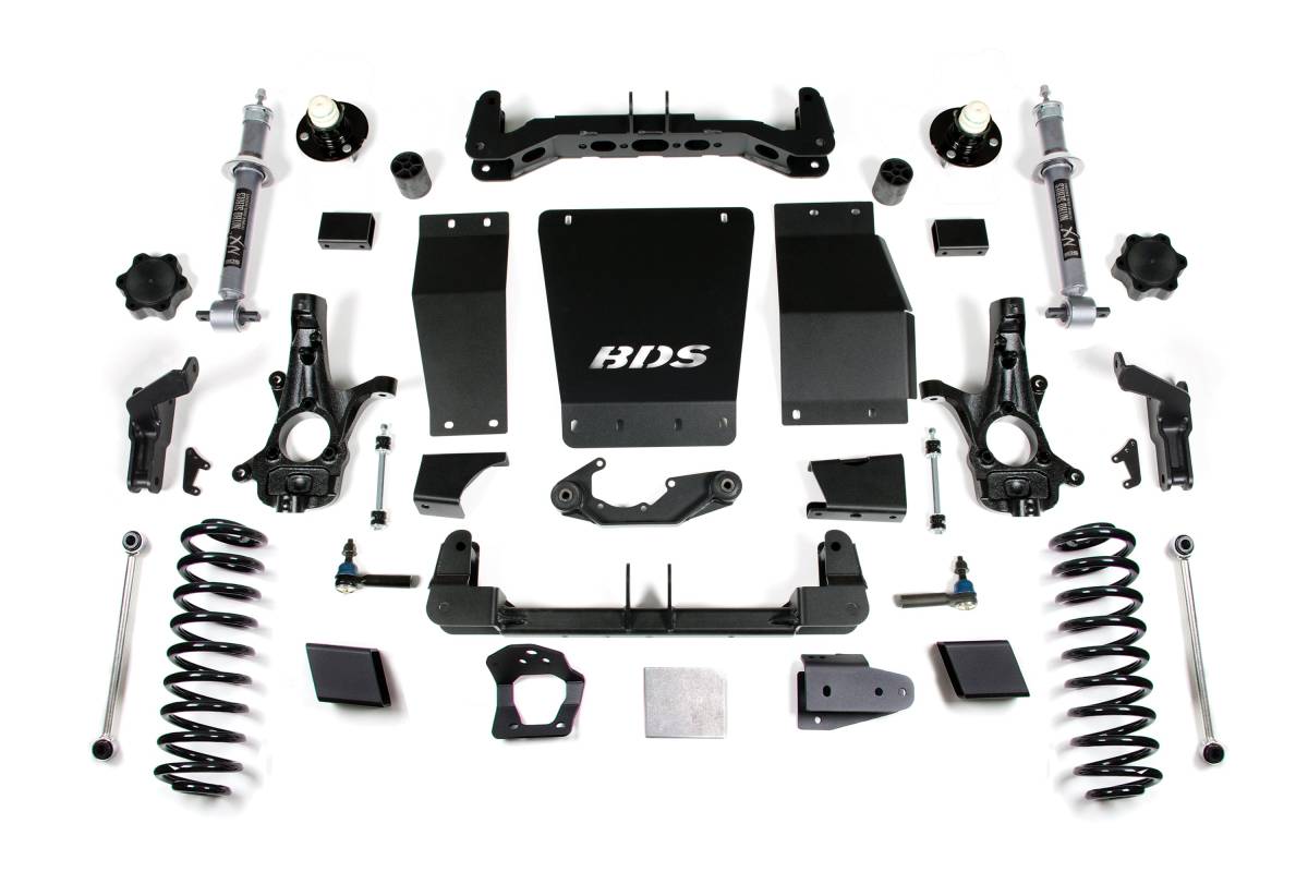 This BDS 6-inch lift kit is designed for 2015–2019 Chevy Suburban, Tahoe, and GMC Yukon/Yukon XL 1500 4WD models equipped with the factory Autoride system. The kit improves stance, performance, and off-road capability while providing clearance for up to 35-inch tires. It corrects suspension and steering geometry at the new ride height for maintained on-road handling characteristics.