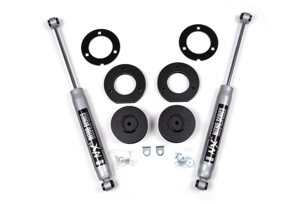This 2-inch lift kit from BDS Suspension is designed to level the front of 2007–2019 Chevrolet Avalanche, Suburban, and Tahoe and GMC Yukon/Yukon XL 1500 4WD trucks. Engineered specifically for these GM SUV platforms, the kit provides additional tire clearance and improved performance without overextending the suspension or driveline angles at full suspension droop. To prevent maxing out ball joints or causing CV damage, BDS combines a small pre-load spacer with a top spacer to properly achieve the lift height. A 2-inch rear spacer kit is also included to raise the vehicle equally front and rear.
