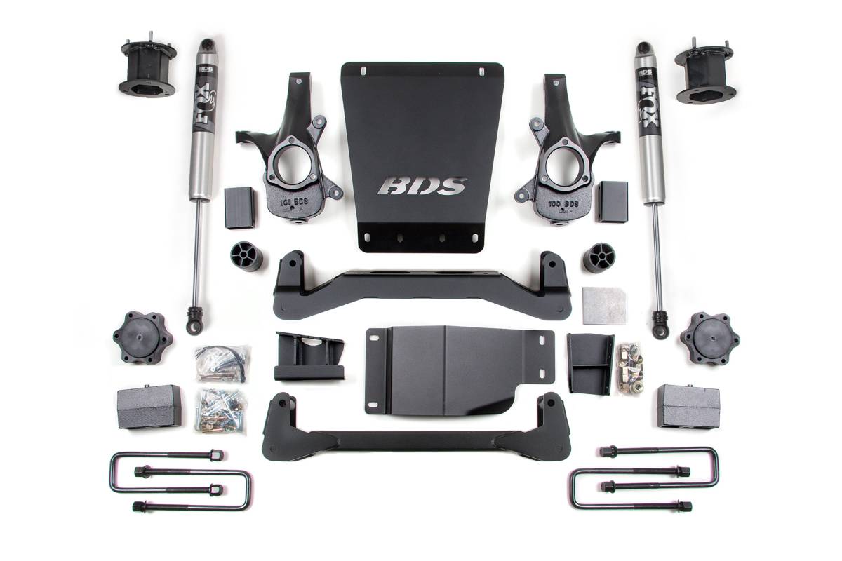 This BDS 4.5-inch lift kit is engineered for 2007–2013 Chevy Silverado and GMC Sierra 1500 4WD trucks. The kit provides clearance for up to 33-inch tires while improving stance, ground clearance, and off-road capability. It takes advantage of BDS's high-clearance design to correct suspension and steering geometry at the new ride height, preserving on-road handling characteristics.