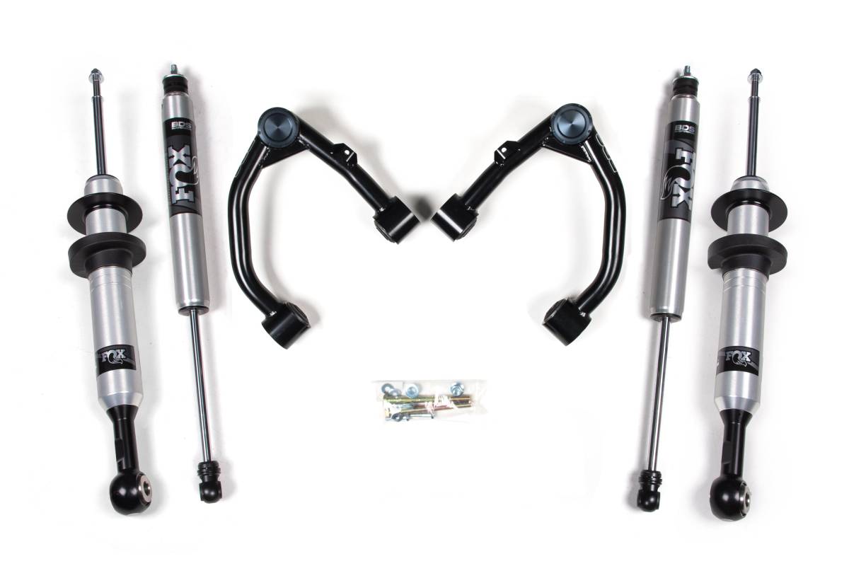 Upgrade your 2007–2021 Toyota Tundra with this 2-inch leveling kit from BDS Suspension, featuring FOX 2.0 Snap Ring Struts and heavy-duty tubular upper control arms. Designed to improve stance, performance, and capability, the kit includes everything needed to level your truck and create clearance for up to 33-inch tires. Up front, FOX 2.0 Performance Series strut shocks and HD tubular upper control arms deliver increased strength and improved suspension travel. In the rear, a matching set of FOX 2.0 Performance shocks provides a smooth ride.