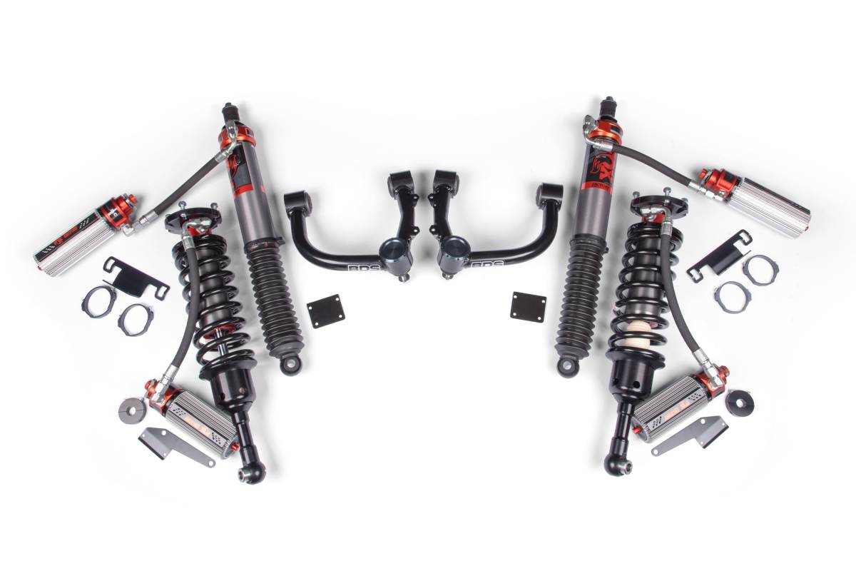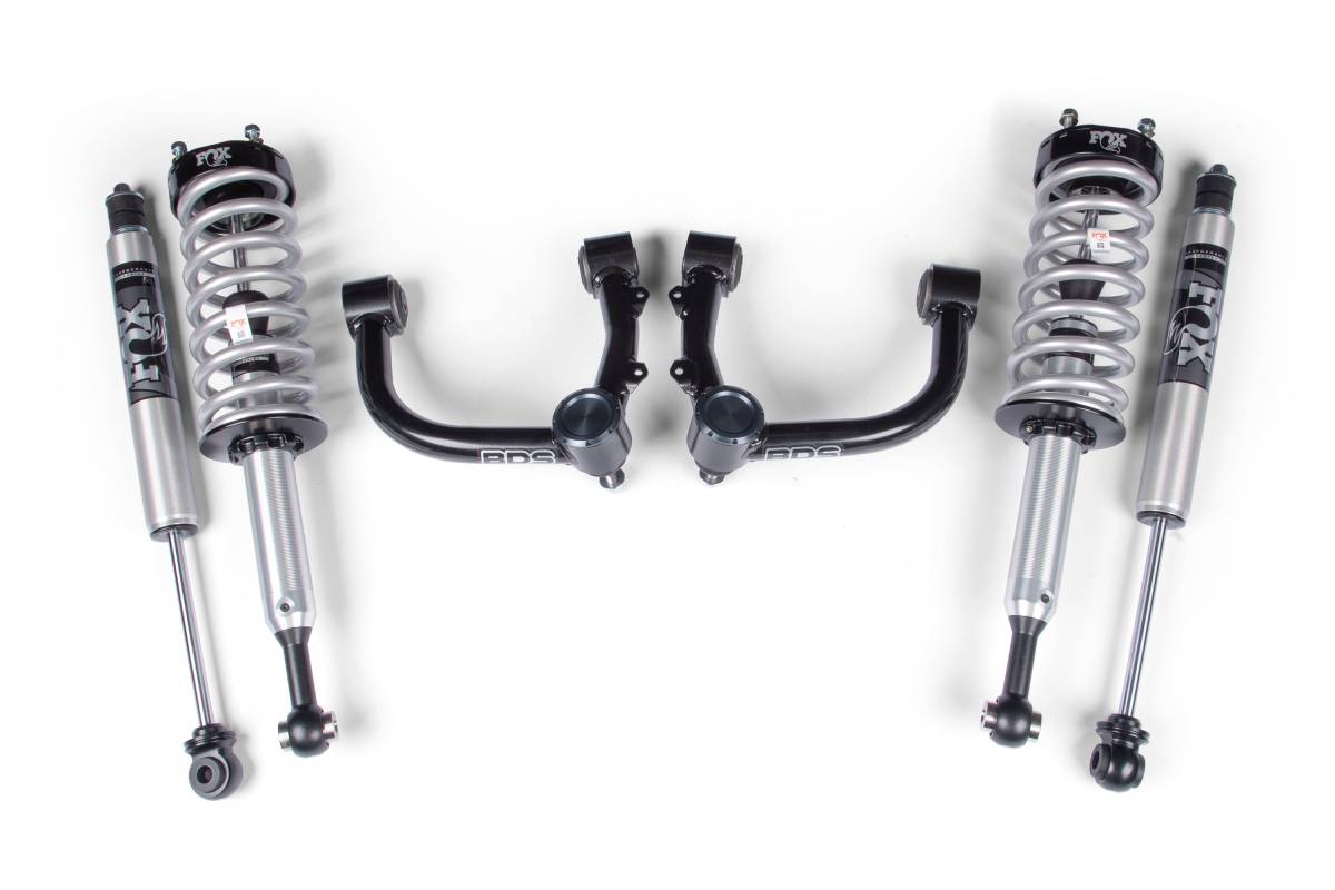 The BDS 2-inch Coilover Shock Leveling Kit combines premium FOX coilover technology with heavy-duty BDS tubular upper control arms to improve suspension geometry, increase wheel travel, and deliver long-term durability for the 2024–2025 Toyota Tacoma. This system is available with multiple FOX shock options — FOX 2.0 Performance Series, FOX 2.5 Performance Series HTO, FOX 2.5 Performance Elite, and FOX 3.0 Factory Race Series IBP — allowing you to select the level of on- and off-road performance that best matches your driving needs. The coilover and upper control arm combination levels the truck, improves front-end clearance, and fits 33-inch tires, all backed by the BDS No Fine Print Warranty.