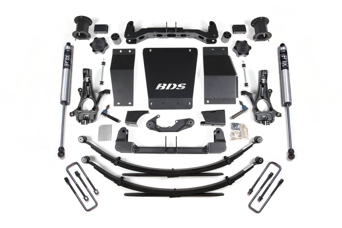 The BDS 4.5-inch lift kit is designed for the 2014–2018 Chevy Silverado and GMC Sierra 1500 4WD, providing improved stance, performance, and off-road capability with clearance for up to 33-inch tires. The kit takes advantage of BDS's high-clearance design to improve ground clearance and off-road protection while correcting suspension and steering geometry for on-road handling.