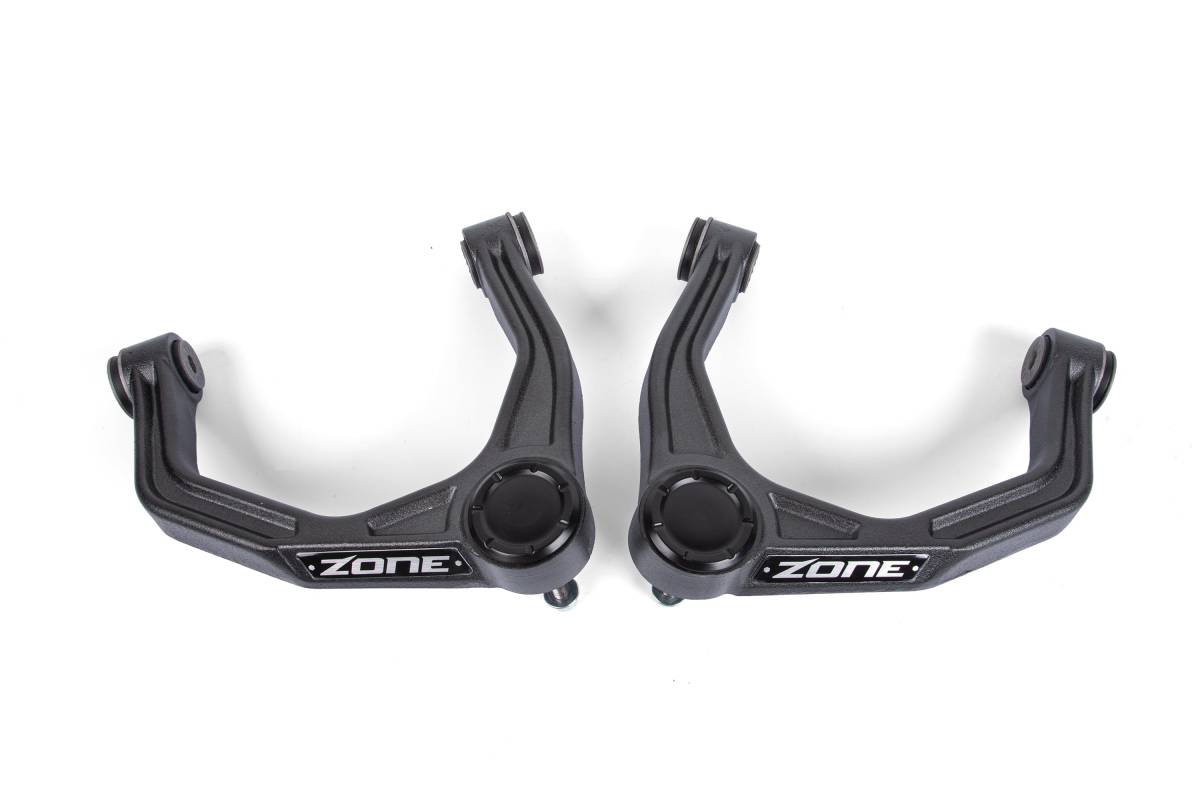 Adventure Series upper control arms are designed as direct replacements for the factory arms on 2019–2026 Chevrolet Silverado and GMC Sierra 1500 trucks. Constructed from cast ductile iron with CNC-machined ball joint and bushing mounts, these arms provide a significantly increased range of travel compared to stock components. Stock-style rubber mount bushings deliver a smooth, quiet ride, and the arms arrive fully assembled and ready to install.