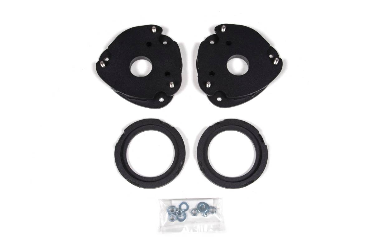 This 1" leveling kit is designed specifically for the Ford Maverick and utilizes front strut spacers to lift the front end 1", creating clearance for up to 245/65R17 or 245/60R18 tires. The strut spacers are built from high-strength American steel, laser cut for a precision fit and finished in a durable black powdercoat.
