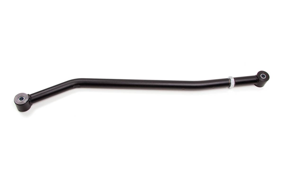 Upgrade your factory front track bar with this heavy-duty adjustable replacement designed for improved strength, control, and axle positioning. The bar is manufactured from 1.25" OD solid steel stock, formed for proper fitment and optimal clearance. A 1"-14 threaded end allows fine length adjustment to recenter the front axle across a wide range of lift heights. Durometer-specific urethane bushings at either end help isolate road noise and vibrations for improved ride quality.