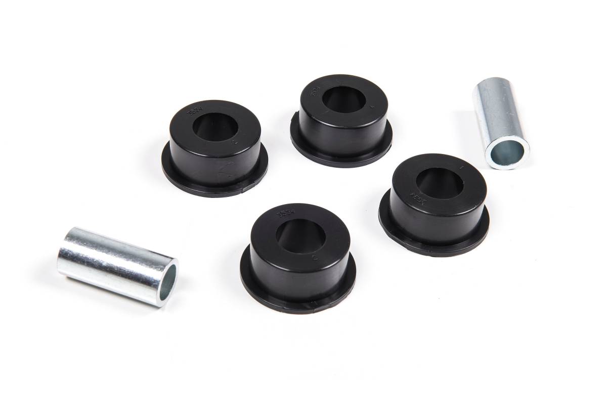 This replacement bushing kit is designed specifically for the Zone Offroad J5411 adjustable track bar. The polyurethane bushings are fluted for even grease distribution and include sleeves to restore your Jeep JK's track bar performance. Each kit includes 4 bushing halves and 2 sleeves for a straightforward installation.