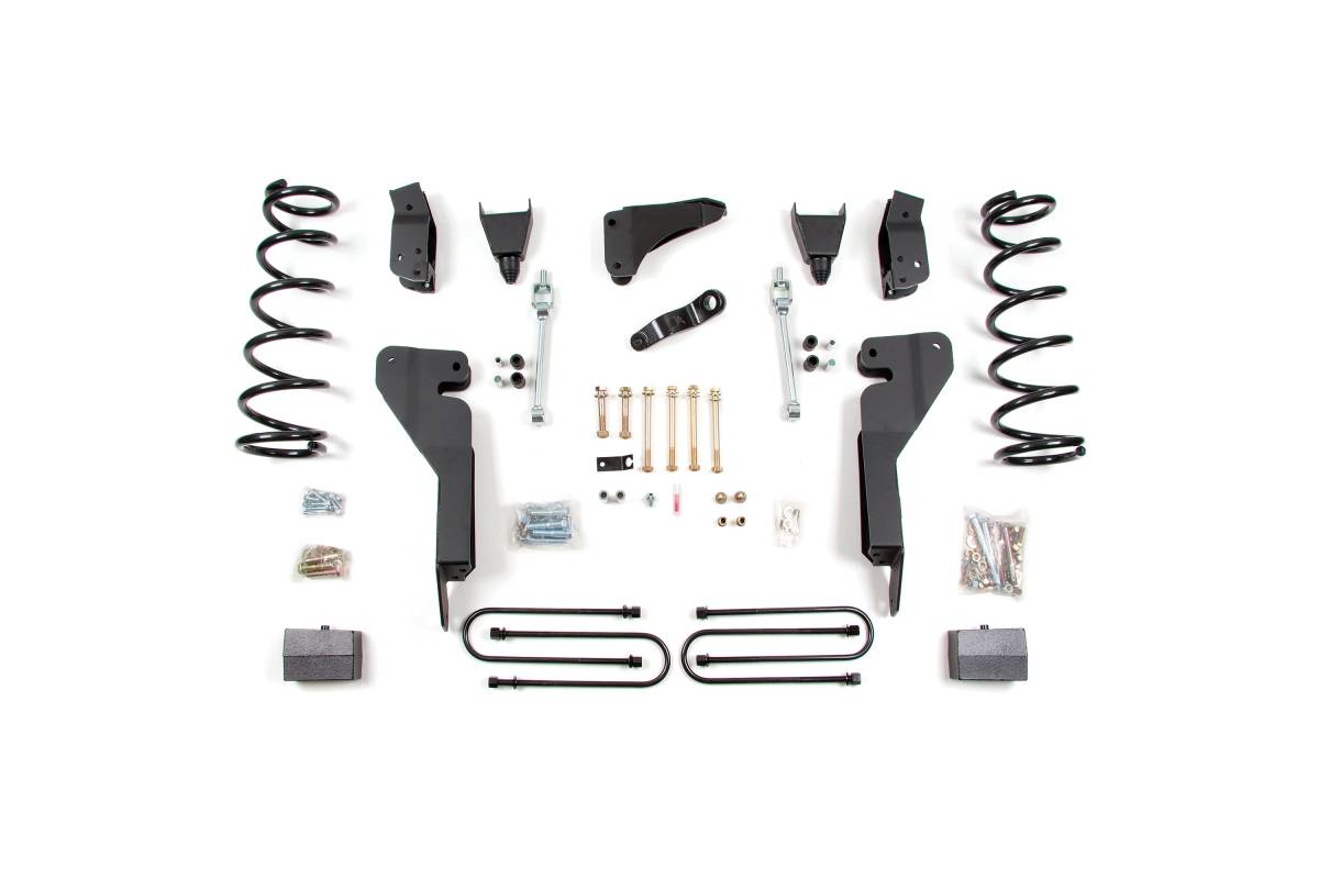 This 4-inch lift kit is designed for the 2012–2013 Dodge/Ram 2500 Power Wagon 4WD. It provides 4 inches of front and rear lift, allowing clearance for up to 37-inch tires. High-strength control arm relocation brackets correct suspension geometry and add rigidity, while the 100% bolt-on design simplifies installation.