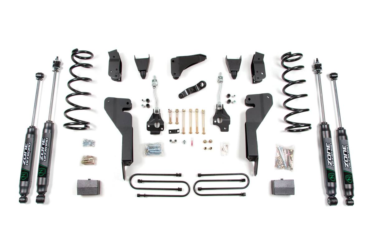 This 6-inch Lift Kit is designed for the 2008 Dodge/Ram 2500/3500 Diesel 4WD truck. The kit provides 6 inches of front lift via coil springs and 4 inches of rear lift via blocks, providing the clearance needed to run up to 37-inch tires. High-strength control arm relocation brackets are included to correct suspension geometry and add rigidity.