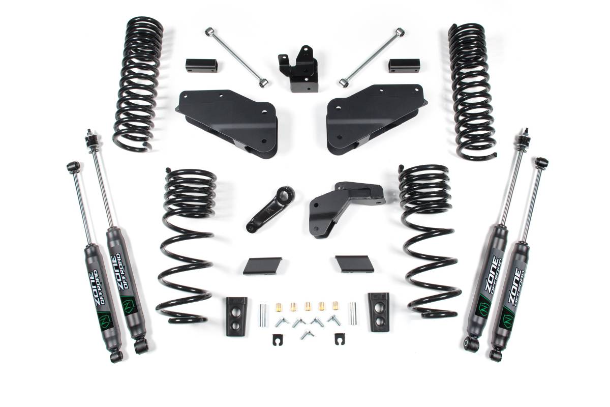 This 6.5-inch lift kit from Zone Offroad is designed to raise your Ram 2500 4WD (2014–2018) and level its stance. The kit includes progressive rate front and rear coil springs, radius arm relocation brackets, steering correction components, and rear lift hardware — everything needed to achieve the lift in a single package. Compatible with up to 37-inch tires.
