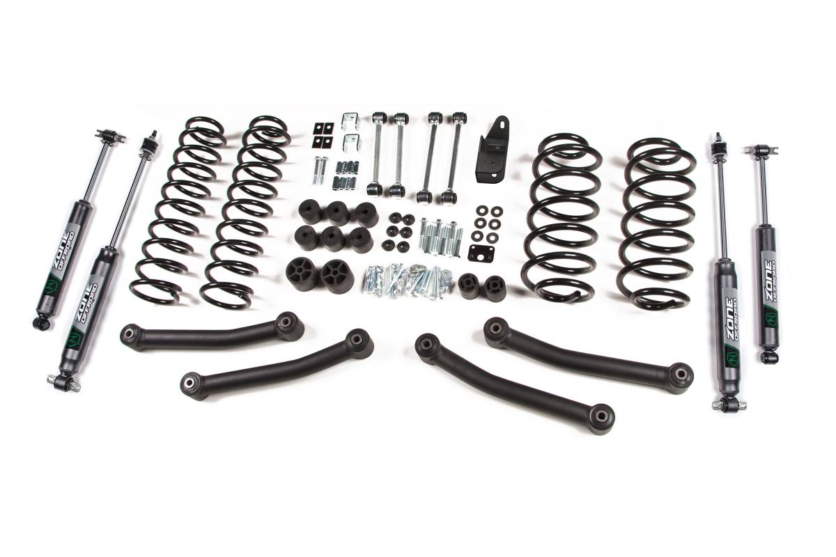 This 4-inch suspension lift kit is designed for 4WD 1997–2002 Jeep Wrangler TJ models. It provides the ground clearance and wheel travel needed for off-road use while maintaining on-road handling. The kit accommodates up to 33-inch tires.