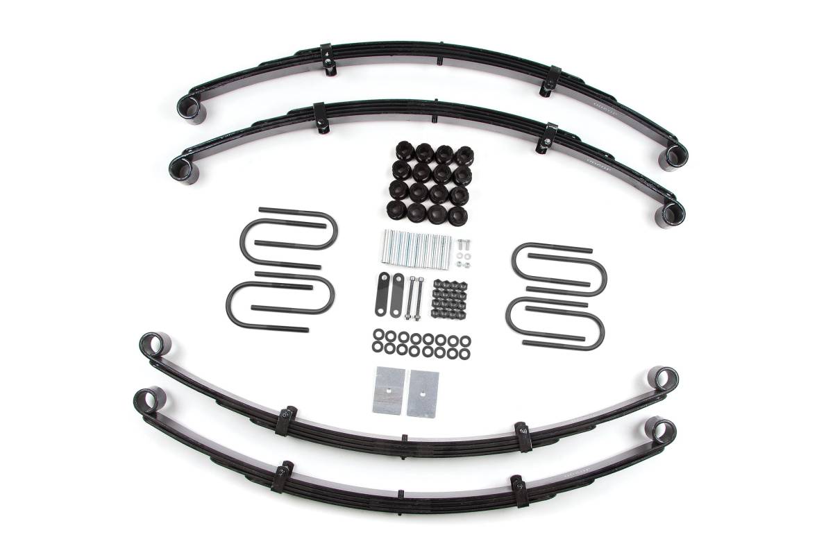 This 2" suspension lift kit is designed for 4WD 1987–1995 Jeep Wrangler (YJ) models. The 4-leaf pack delivers a smooth and consistent spring rate, providing clearance for up to 31" tires and everything needed for improved off-road capability.