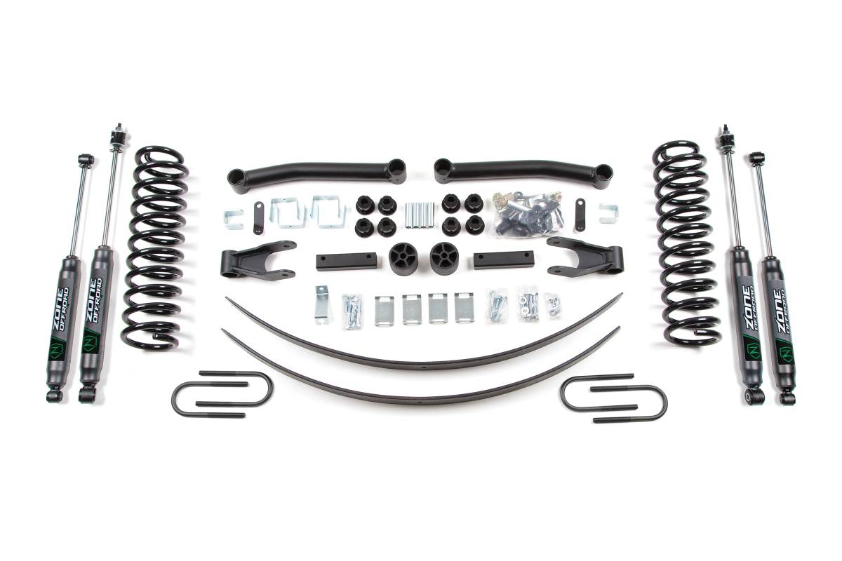 - Transfer case drop kit included to correct rear driveline angle and allow use of the factory rear driveshaft.