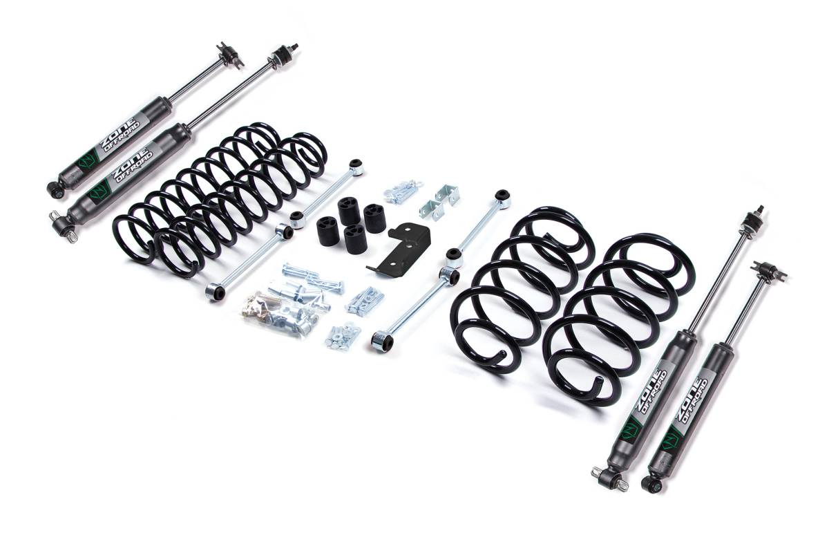 This 3-inch lift kit for the 1997–2002 Jeep Wrangler TJ increases droop and wheel travel while providing enough lift to fit 33-inch tires. Heavy-duty coil springs handle demanding use while maintaining their original ride height. Also fits Rubicon and Unlimited models.