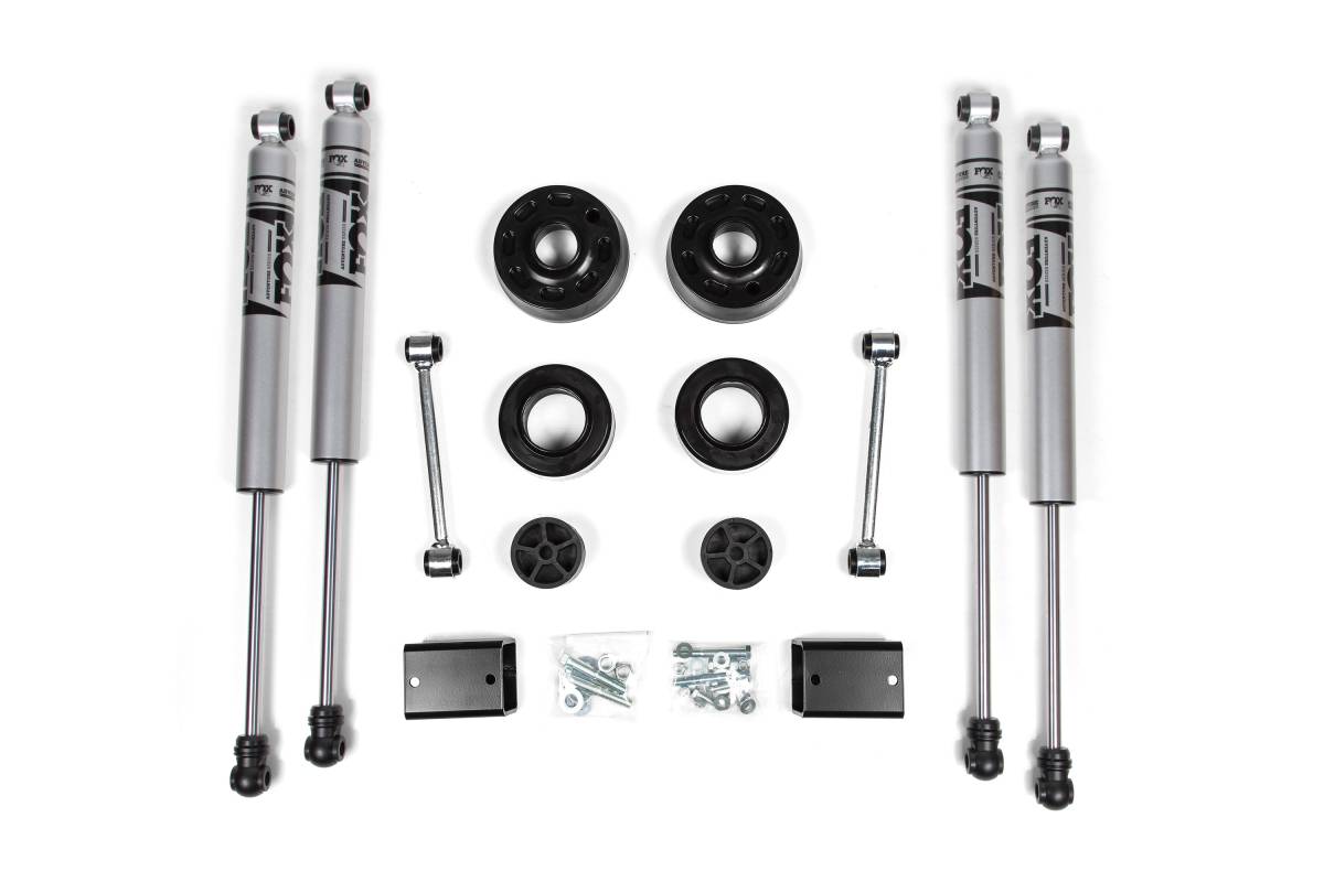 Includes FOX 2.0 Adventure Series shocks featuring a nitrogen-charged twin-tube design, 10-stage velocity-sensitive valving, dual-welded ends, self-lubricating seals, a 2-inch diameter steel body, and a black powder coat finish for enhanced durability and on- and off-road performance.