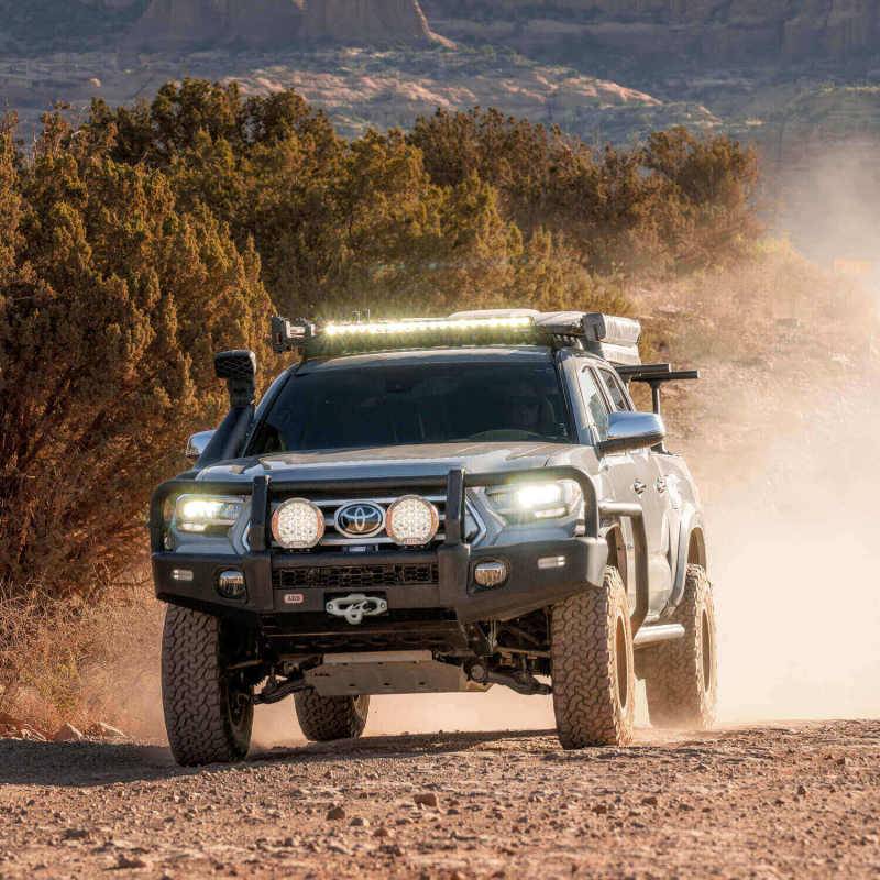 ARB Bumpers provide reliable protection for your vehicle and its passengers, and are a solid base for mounting accessories such as driving lights and winches. Thoughtfully designed, superbly engineered and meticulously manufactured, the ARB Summit Bumper lives up to its reputation for quality and functionality. Building upon ARB's proven air bag compatible mounting architecture, the Summit bumper incorporates unique design features such as a 30mm edge radius on the wings and center pan, wider press formed cover straps, 60.3mm top tubing, two-piece polyethylene buffers, and redesigned fog light surrounds. This bumper kit includes a winch install kit, fog light kit and wiring loom. ARB Bumpers for Toyota applications are available in Integrit powder coating for increased durability and corrosion protection. This proprietary polymer blend delivers incredible resistance to damage and bumpers are pre-treated with a zinc shield before being coated. Summit Bumper Kits for the Toyota Tacoma MY20-21 include a Camera Relocation Kit that allows the camera to be moved for a clear view without obstruction from the bumper itself. ARB Bumpers provide reliable protection for your vehicle and its passengers, and are a solid base for mounting accessories such as driving lights and winches. Thoughtfully designed, superbly engineered and meticulously manufactured, the ARB Summit Bumper lives up to its reputation for quality and functionality. Building upon ARB's proven air bag compatible mounting architecture, the Summit bumper incorporates unique design features such as a 30mm edge radius on the wings and center pan, wider press formed cover straps, 60.3mm top tubing, two-piece polyethylene buffers, and redesigned fog light surrounds. This bumper kit includes a winch install kit, fog light kit and wiring loom. ARB Bumpers for Toyota applications are available in Integrit(TM) powder coating for increased durability and corrosion protection. This proprietary polymer blend delivers incredible resistance to damage and bumpers are pre-treated with a zinc shield before being coated. Summit Bumper Kits for the Toyota Tacoma MY20-21 include a Camera Relocation Kit that allows the camera to be moved for a clear view without obstruction from the bumper itself.