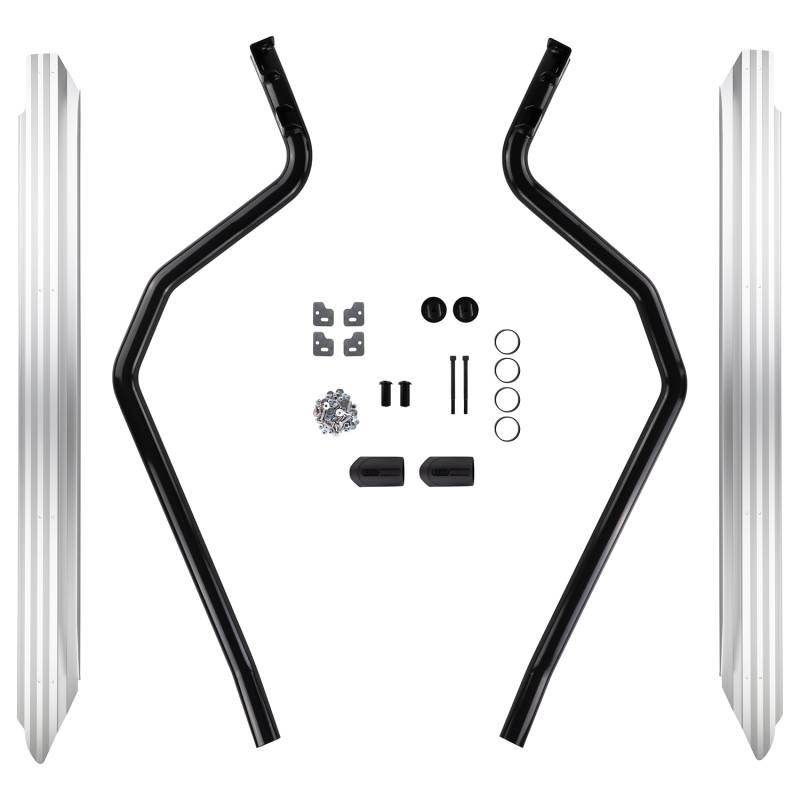 Side rail and combination steps to protect the front quarter panels and lower sills. The integrated step offers improved vehicle access. While they offer an excellent barrier against rock ledges, they are not considered a true rock slider that might be required for aggressive rock crawling.