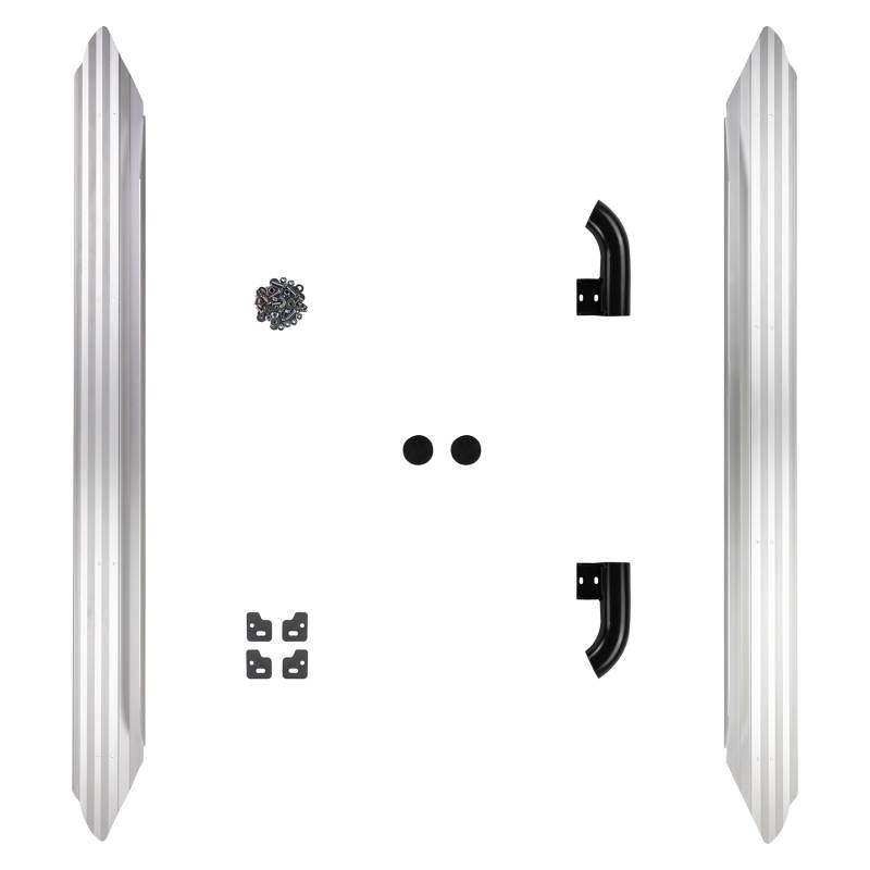 Side rail and combination steps to protect the front quarter panels and lower sills. The integrated step offers improved vehicle access. While they offer an excellent barrier against rock ledges, they are not considered a true rock slider that might be required for aggressive rock crawling.