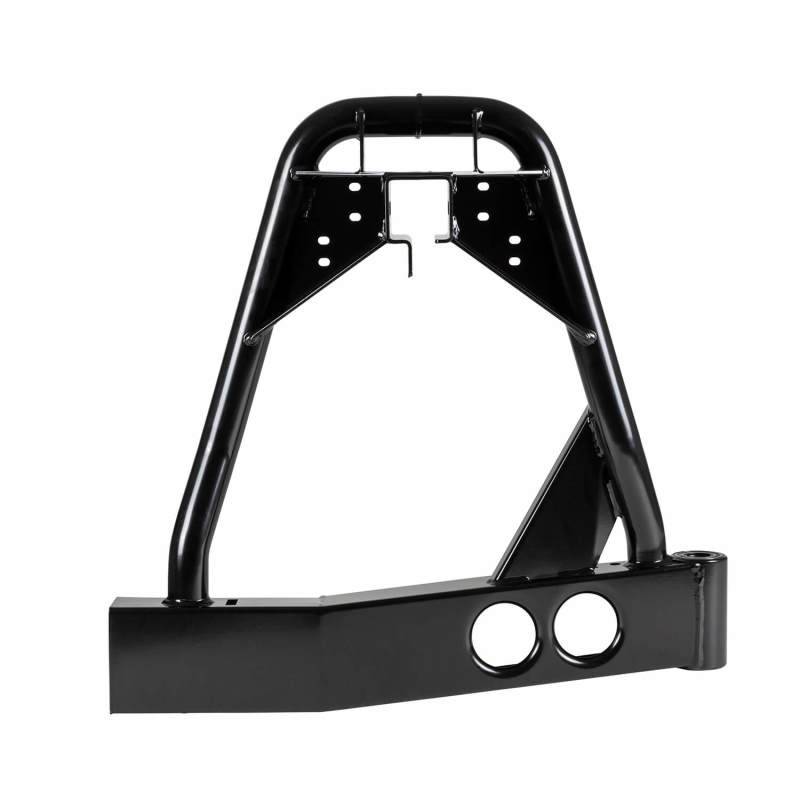 Built to the same uncompromising standards as our Bumpers, all ARB tire carriers incorporate a heavy duty towing system and depending on the vehicle may accommodate one or two tires or a jerry can holder. There are many benefits associated with fitting a tire carrier to a vehicle. Many 4x4s have their spare tire positioned underneath the vehicle making it difficult to access and vulnerable to damage, particularly in harsh off road environments. Others have their spare tire mounted on the back door, which can place stress on the door hinges, resulting in rattles and compromised dust sealing as increased wear is put on the door assembly. Both of these mounting methods can also prove unsuitable if a larger tire size is sought. An ARB tire carrier addresses all of these issues, relocating the spare tire onto the bumper assembly via a swing out carrier. Operation of the swing out carriers could not be more simple. Slight pressure applied to a lever opens each carrier with a gas strut assisting this process. The strut holds the carrier in the open position, with engagement of a locking pin only being necessary if the vehicle is on an extreme side angle. The carrier can be closed with a simple slam shut, with the spring loaded locking pin automatically disengaging as soon as the weight is released.