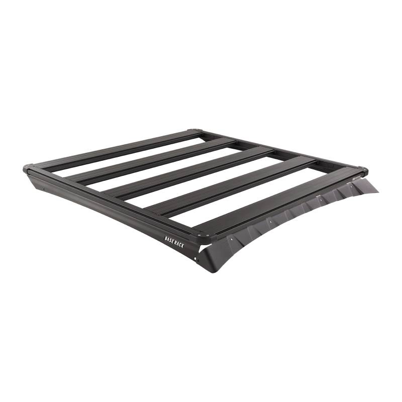 The BASE Rack takes accessories and cargo loading to a whole new level of simplicity, speed, and personalization. The BASE Rack is fully-welded aluminum for lightweight strength that doesn't flex under load. It can therefore be mounted close to the vehicle roof for a slimline aesthetic and reduced drag. Its dovetail extrusion attachment system runs the full perimeter of the rack and along each internal beam providing endless mounting and attachment options. Adding, removing, and repositioning accessories and roof loads is quick and easy and individual items may be installed or removed without disturbing the whole load. Unlike traditional roof rack channels, the BASE Rack dovetail system doesn't collect dust and debris. This kit includes a 49 in (L) x 51 in (W) BASE Rack, mount kit with wind deflector to suit the Toyota Tacoma. The wider rack option allows for more accessories to be hung to the side without interference with the vehicle. It also allows for certain accessories such as aux lights to be mounted underneath the rack and for accessories to be mounted east-west (e.g., recovery boards) offering greater flexibility with cargo loading.