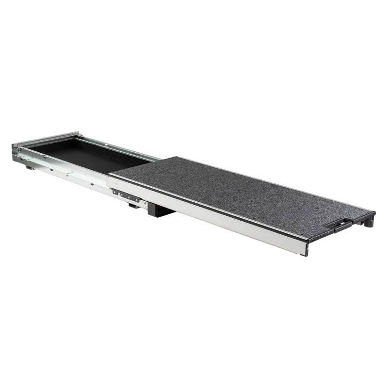Roller Floor is a fantastic new product. The Roller Floor sits only 140 mm off the vehicle floor, enabling lower mounting and easier access to items such as fridges or tool boxes. The Roller maximizes storage space with an incorporated slide out tray. When not housing a refrigerator, the Roller Floor has a flat top thats far more convenient to sit other items on than a traditional steel fridge slide. Ever tried to sit your groceries on top of a traditional fridge slide?