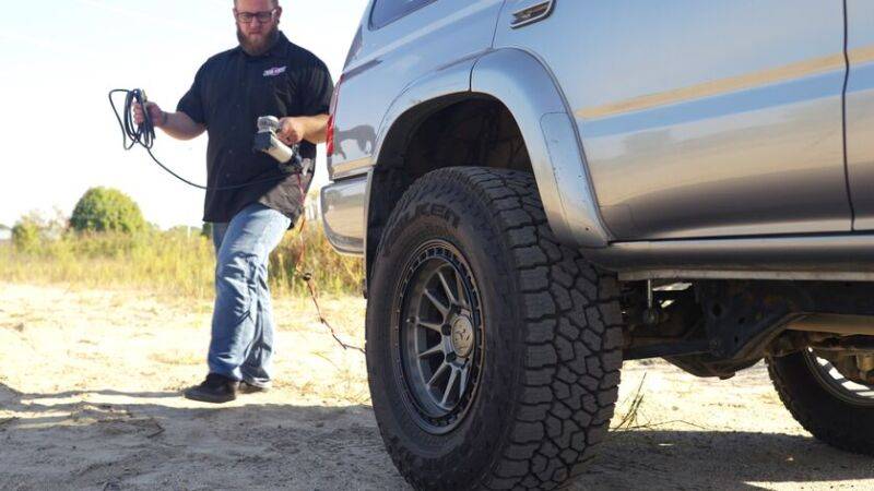 Quick, accurate, and easy inflation. Air Lift's new Portable Compressor features a portable compressor with a digital gauge showing the pressure reading, going up to 120 PSI, and preset pressures with automatic shutoff. Most compressors have a small built-in battery that can die quickly or require you to find the vehicle's battery. However, with the Air Lift Digital Portable Compressor, you can plug it right into the vehicle's 7-way trailer plug or connect it to the vehicle's battery. The kit's 7-way power adapter allows the compressor to be powered via the vehicle's 7-way trailer plug, and an alligator-style battery clamp power adapter allows the compressor to be powered via the vehicle's battery. The connectors can be easily swapped via the SAE connector on the power cord. Also included is a 3-piece inflation tip kit and a carry bag. The Portable Compressor has no complicated wiring installations or high failure/low power limitations that some "pocket" systems face. This compressor can inflate or deflate air springs, vehicle tires, bike tires, toys, and more. This system is ideal for those needing air compressor support in remote areas where finding an air compressor might be hard. Our Portable Compressor is an excellent option for those who want the peace of mind and added convenience of having a quick and easy-to-use solution whenever needed. Quick, accurate, and easy inflation. Air Lift’s new Portable Compressor features a portable compressor with a digital gauge showing the pressure reading, going up to 120 PSI, and preset pressures with automatic shutoff. Most compressors have a small built-in battery that can die quickly or require you to find the vehicle's battery. However, with the Air Lift Digital Portable Compressor, you can plug it right into the vehicle’s 7-way trailer plug or connect it to the vehicle's battery. The kit’s 7-way power adapter allows the compressor to be powered via the vehicle’s 7-way trailer plug, and an alligator-style battery clamp power adapter allows the compressor to be powered via the vehicle’s battery. The connectors can be easily swapped via the SAE connector on the power cord. Also included is a 3-piece inflation tip kit and a carry bag. The Portable Compressor has no complicated wiring installations or high failure/low power limitations that some “pocket” systems face. This compressor can inflate or deflate air springs, vehicle tires, bike tires, toys, and more. This system is ideal for those needing air compressor support in remote areas where finding an air compressor might be hard. Our Portable Compressor is an excellent option for those who want the peace of mind and added convenience of having a quick and easy-to-use solution whenever needed.