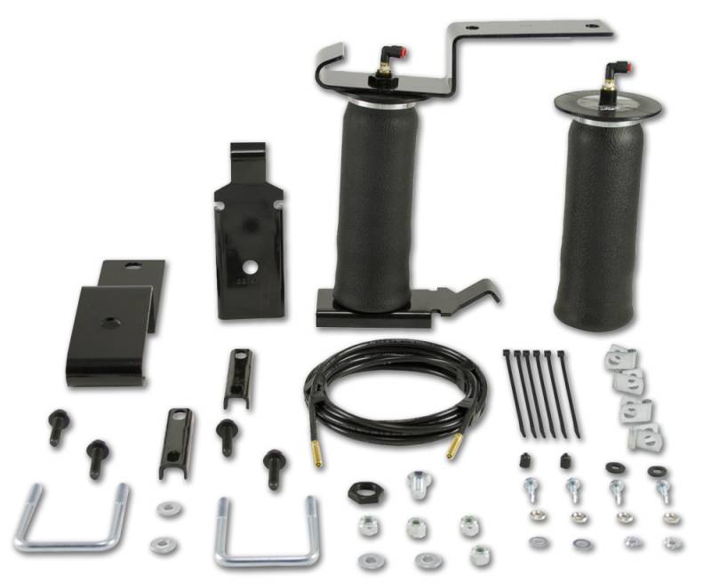RideControl provides more safety, stability and ride comfort. The kit fits many popular vehicles with leaf springs, including half-ton and mini pickups, full-size and mini vans, and SUVs. Both front and rear applications are available for these vehicles. Each kit includes everything you need, and is easily installed in two hours or less. End caps are made of an ultra-strong nylon composite that is as strong as steel, but weighs less and is corrosion-proof. Air Lift RideControl adjustable air springs work with your existing leaf spring suspension. Just add air when towing or hauling a heavy load, and reduce air pressure when unloaded, the air bags are fully adjustable for a great ride. Air Lift air springs eliminate sag, sway, and bottoming out. Each kit includes everything you need, and is easily installed in two hours or less. These rugged, durable components mean that you get reliable service from the springs for the lifetime of the vehicle. Air Lift RideControl air helper springs are air-adjustable from 5 to 100 PSI and have up to 2,000 pounds of leveling capacity, right up to the manufacturer's recommended Gross Vehicle Weight Rating. They also come with a limited lifetime warranty and an exclusive 60-day ride satisfaction guarantee. RideControl provides more safety, stability and ride comfort. The kit fits many popular vehicles with leaf springs, including half-ton and mini pickups, full-size and mini vans, and SUVs. Both front and rear applications are available for these vehicles. Each kit includes everything you need, and is easily installed in two hours or less. End caps are made of an ultra-strong nylon composite that is as strong as steel, but weighs less and is corrosion-proof. Air Lift RideControl adjustable air springs work with your existing leaf spring suspension. Just add air when towing or hauling a heavy load, and reduce air pressure when unloaded, the air bags are fully adjustable for a great ride. Air Lift air springs eliminate sag, sway, and bottoming out. Each kit includes everything you need, and is easily installed in two hours or less. End caps are made of an ultra-strong nylon composite that is as strong as steel, but weighs less than steel and is also corrosion-proof. These rugged, durable components mean that you get reliable service from the springs for the lifetime of the vehicle. Air Lift RideControl air helper springs are air-adjustable from 5 to 100 PSI and have up to 2,000 pounds of leveling capacity, right up to the manufacturer's recommended Gross Vehicle Weight Rating. They also come with a limited lifetime warranty and an exclusive 60-day ride satisfaction guarantee.