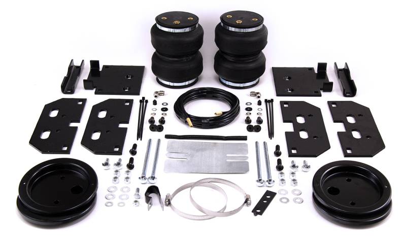 LoadLifter 5000 ULTIMATE adjustable air spring kits feature all of the benefits of our heaviest rated air spring with the addition of an internal jounce bumper inside the spring for the ultimate in ride comfort. An Air Lift exclusive product! Fits vehicles with in-bed hitches. Tow and haul the heaviest loads with safety and comfort with LoadLifter 5000 ULTIMATE. Works with vehicle's leaf springs to provide up to 5,000 lbs. of rear load leveling capacity and keeps the vehicle riding stable, level and comfortable whether loaded or unloaded. Fully adjustable from 5 to 100 PSI. The closed-cell urethane foam jounce bumper inside the ULTIMATE air springs provide a cushion of air that absorbs shock, eliminates harsh jarring on rough roads and protects vehicles carrying heavy loads. Never bottom out again with the ULTIMATE! LoadLifter 5000 ULTIMATE air springs are maintenance free! Safely run with zero air pressure because of the internal jounce bumper. Replaces factory jounce bumper that is sometimes removed when adding air springs. Requires no drilling into frame! Includes industry-exclusive 60 Day No Questions Money Back Guarantee! Includes the most comprehensive Lifetime Warranty in the industry---covers all kit contents including brackets, fittings and air line. Air springs are built like a tire and are reinforced by durable, 2-ply fabric for maximum strength. Exclusive upper and lower roll plates included. Protect the springs from sharp edges, such as brackets or the frame. The kit includes 2 air springs, brackets, air lines, Schrader valve and all of the hardware needed for installation. Includes fully illustrated instruction manual. Add an Air Lift on-board air compressor system to inflate and deflate air springs with the touch of a button from inside or outside of the vehicle.