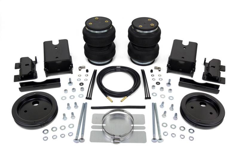 LoadLifter 5000 ULTIMATE adjustable air spring kits feature all of the benefits of our heaviest rated air spring with the addition of an internal jounce bumper inside the spring for the ultimate in ride comfort. An Air Lift exclusive product. Fits vehicles with in-bed hitches. Tow and haul the heaviest loads with safety and comfort with LoadLifter 5000 ULTIMATE. Works with vehicle's leaf springs to provide up to 5,000 lbs. of front load leveling capacity and keeps the vehicle riding stable, level and comfortable whether loaded or unloaded. Fully adjustable from 5 to 100 PSI. The closed-cell urethane foam jounce bumper inside the ULTIMATE air springs provide a cushion of air that absorbs shock, eliminates harsh jarring on rough roads and protects vehicles carrying heavy loads. Never bottom out again with the ULTIMATE. LoadLifter 5000 ULTIMATE air springs are maintenance free. Safely run with zero air pressure because of the internal jounce bumper. Replaces factory jounce bumper that is sometimes removed when adding air springs. Easy to install in less than 2 hours. Includes industry-exclusive 60 Day No Questions Money Back Guarantee! Includes the most comprehensive Lifetime Warranty in the industry---covers all kit contents including brackets, fittings and air line. Air springs are built like a tire and are reinforced by durable, 2-ply fabric for maximum strength. Exclusive upper and lower roll plates included. Protect the springs from sharp edges, such as brackets or the frame. The kit includes 2 air springs, brackets, air lines, Schrader valve and all of the hardware needed for installation. Includes fully illustrated instruction manual. Add an Air Lift on-board air compressor system to inflate and deflate air springs with the touch of a button from inside or outside of the vehicle.