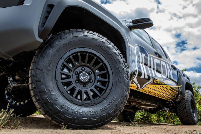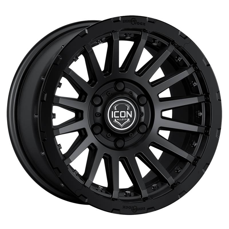 Any hardcore off-road enthusiast knows the numerous benefits that lower tire pressures offer such as improved ride quality and a larger contact patch for increased traction. However, low pressures also increase the risk of de-beading the tire during extreme side loads or aggressive driving. While traditional bead lock wheels address this issue by clamping the tire’s bead, they also need frequent maintenance, require specialty tools/parts, increase rotational mass, and are NOT legal for on-road use. During an accelerated R&D process ICON engineers subjected the Recon PRO to thousands of miles of real-world abuse throughout harsh and unforgiving environments. After on-vehicle testing was concluded, the Recon PRO was sent to an independent contractor for precise lab testing, specifically the FMVSS No.139 Tire Bead Unseat Resistance Test (modified to 10 psi). Results from multiple tests validated the effectiveness of ICON’s InnerLock technology by exceeding the mechanical limits of the machine (over 7600lbs load) without ever de-beading the tire. Staying true to the ICON Alloys approach, the Recon PRO has been engineered to maximize caliper clearance and optimize wheel position for un-hindered suspension travel and steering function. Backspace and wheel offset dimensions have been strategically developed to reduce scrub radius, improving all-around handling and ride quality. The Recon PRO has also been strength tested to yield a 3,200lb load rating - making it one of the strongest wheel options on the market. With build features such as these, it's clear that a set of ICON Alloys wheels is the perfect complement to any truck, Jeep, or SUV. The ICON Alloys Recon PRO with patented InnerLock technology offers the best of both worlds by using a robust bead retention system to keep the tire bead secured to the wheel while also being fully DOT compliant. This provides confidence in knowing that your wheels are prepared to tackle whatever situation you encounter - on or off the beaten path. InnerLock is ready for any type of terrain and every single adventure. The included high-grade aluminum, removable, and replaceable HALO Wheel Armor keeps the wheel looking new by protecting the Recon Pro from trail rash. This HALO Wheel Armor is replaceable in 90° segments so individual sections can be changed if only a portion of the ring becomes damaged. Beyond superior form and function the HALO Wheel Armor can be easily customized to match your style for a truly unique wheel experience.