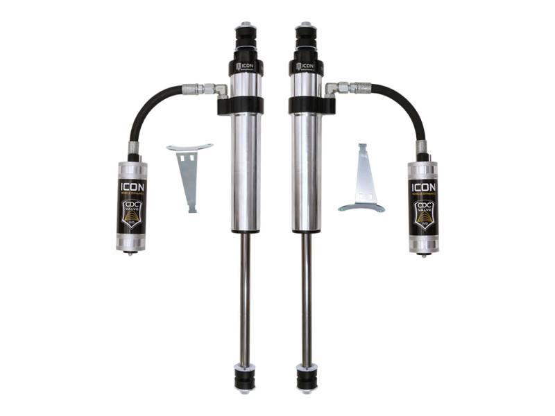 ICON Vehicle Specific (V.S.) 2.5 Aluminum Series shocks are designed and built to give your vehicle outstanding performance off-road and a smooth ride on the street. These shocks are configured specifically for each application in both length and damping tune. Like all ICON'S Shock Absorbers, V.S. 2.5 Aluminum Series shocks are 100% rebuildable and 100% revalveable. For piggyback and specific remote reservoir applications, ICON'S unique use of a 6061 billet aluminum manifold a few inches below the top cap of the shock creates an internal Bump Zone that when used creates an additional 20% of damping force. This additional force helps prevent harsh bottom outs and controls the suspension when compressing at high velocity. The ICON CDC Valve is an externally adjustable valve that restricts oil flow into the reservoir which creates 10 levels of compression damping force ranges.