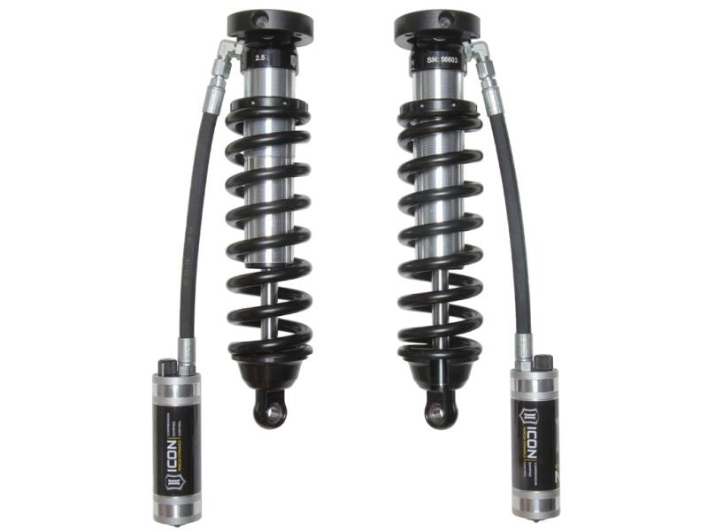 The ICON Vehicle Dynamics V.S. Series 2.5” remote reservoir coilover shocks w/ CDCV are an incredible upgrade for the front end of the 1996-2002 4Runner. ICON’s Vehicle-specific valving provides a sport tuned feel on and off-road while offering 0-3” of lift height adjustability for use of larger, more aggressive wheel and tire combinations. ICON's larger 2.5” shock body and increased piston area over stock components provides improved damping ability and outstanding ride characteristics across varying types of terrain. Remote reservoirs ensure optimum performance by increasing the duration of consistent damping regardless of situation, keeping the shocks at a cooler operating temperature during heavy use. The ICON CDC Valve upgrade is included for those desiring an easy way to tune the ride externally with 10 adjustment settings from soft to hard. When paired with ICON rear 2.0 Aluminum Series or 2.5 Series shocks, vehicle control will be balanced front to rear resulting in the best overall driving experience for your 4Runner.