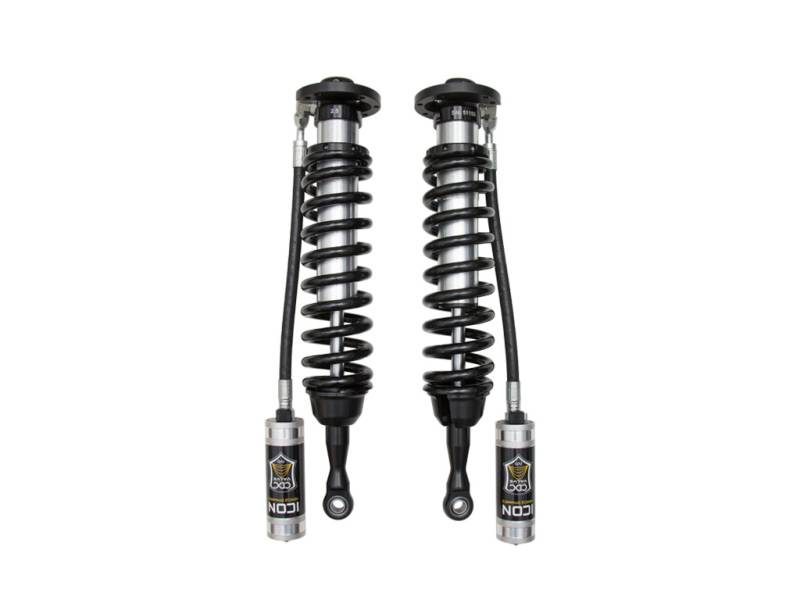 The ICON Vehicle Dynamics V.S. Series 2.5” remote reservoir coilover shocks w/ CDCV are an incredible upgrade for the front end of the 2007-2021 Toyota Tundra and 2008-2022 Toyota Sequoia. ICON’s Vehicle-specific valving provides a sport tuned feel on and off-road while offering 1-3” of lift height adjustability for use of larger, more aggressive wheel and tire combinations. ICON's larger 2.5” shock body and increased piston area over stock components provides improved damping ability and outstanding ride characteristics across varying types of terrain. Remote reservoirs ensure optimum performance by increasing the duration of consistent damping regardless of situation, keeping the shocks at a cooler operating temperature during heavy use. The ICON CDC Valve upgrade is included for those desiring an easy way to tune the ride externally with 10 adjustment settings from soft to hard. When paired with ICON rear 2.0 Aluminum Series or 2.5 Series shocks, vehicle control will be balanced front to rear resulting in the best overall driving experience for your Tundra or Sequoia. The ICON Vehicle Dynamics V.S. Series 2.5” remote reservoir coilover shocks w/ CDCV are an incredible upgrade for the front end of the 2007-2021 Toyota Tundra. ICON’s Vehicle-specific valving provides a sport tuned feel on and off-road while offering 1-3” of lift height adjustability for use of larger, more aggressive wheel and tire combinations. ICON's larger 2.5” shock body and increased piston area over stock components provides improved damping ability and outstanding ride characteristics across varying types of terrain. Remote reservoirs ensure optimum performance by increasing the duration of consistent damping regardless of situation, keeping the shocks at a cooler operating temperature during heavy use. The ICON CDC Valve upgrade is included for those desiring an easy way to tune the ride externally with 10 adjustment settings from soft to hard. When paired with ICON rear 2.0 Aluminum Series or 2.5 Series shocks, vehicle control will be balanced front to rear resulting in the best overall driving experience for your Tundra.