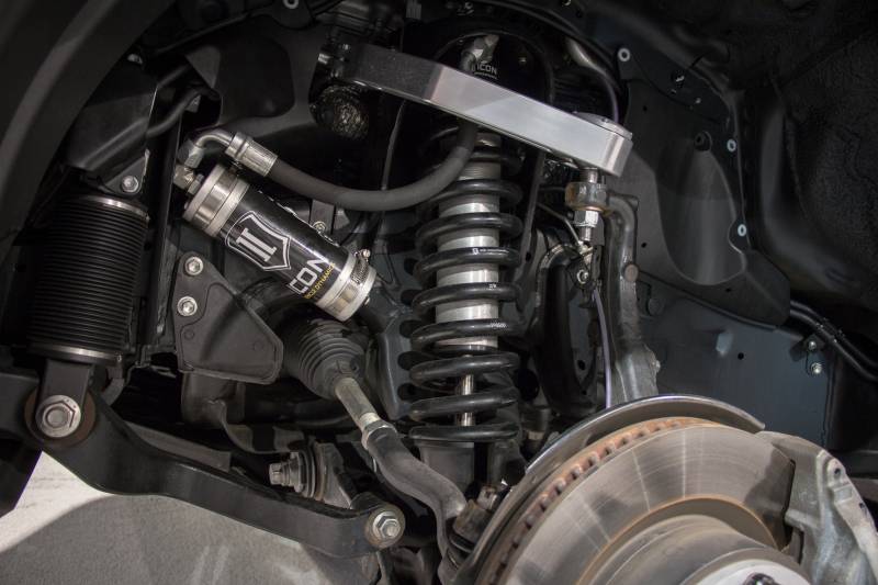 ICON Vehicle Dynamics V.S. Series 2.5” remote reservoir coilover shocks are an incredible upgrade for the front end of the 2008-UP Toyota Land Cruiser 200 Series. ICON’s Vehicle-specific valving provides a sport tuned feel on and off-road while offering 1.5-3.5” of lift height adjustability for use of larger, more aggressive wheel and tire combinations. ICON's larger 2.5” shock body and increased piston area over stock components provides improved damping ability and outstanding ride characteristics across varying types of terrain. The remote reservoir ensures optimum performance by increasing the duration of consistent damping regardless of situation, keeping the shocks at a cooler operating temperature during heavy use. When paired with ICON rear 2.5 Series shocks, vehicle control will be balanced front to rear resulting in the best overall driving experience for your Land Cruiser 200 Series.