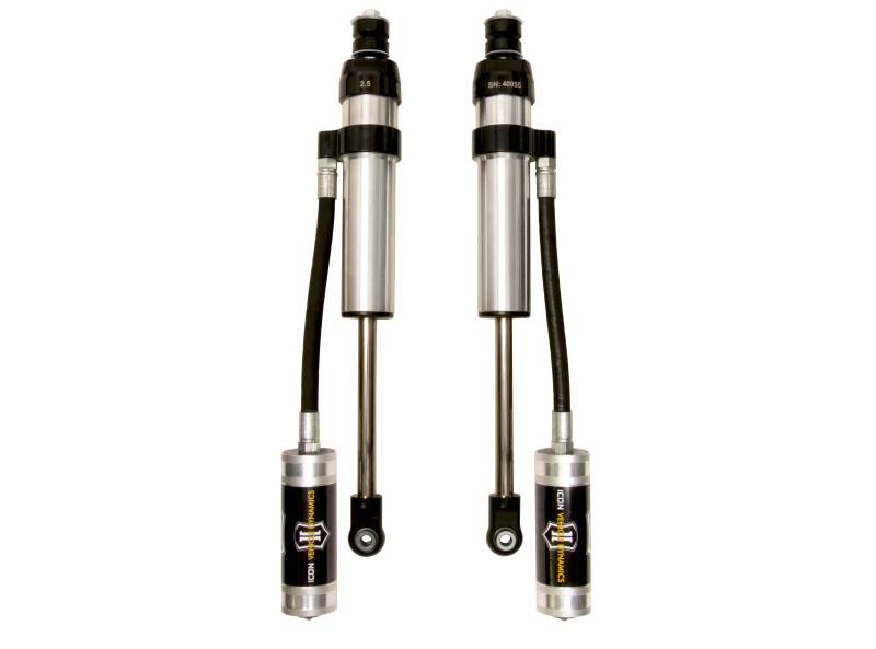 ICON Vehicle Specific (V.S.) 2.5 Aluminum Series shocks are designed and built to give your vehicle outstanding performance off-road and a smooth ride on the street. These shocks are configured specifically for each application in both length and damping tune. Like all ICON'S Shock Absorbers, V.S. 2.5 Aluminum Series shocks are 100% rebuildable and 100% revalveable. For piggyback and specific remote reservoir applications, ICON'S unique use of a 6061 billet aluminum manifold a few inches below the top cap of the shock creates an internal Bump Zone that when used creates an additional 20% of damping force. This additional force helps prevent harsh bottom outs and controls the suspension when compressing at high velocity. If you are looking for a more user defined tune, consider looking into the Compression Damping Control Valve (CDCV) shocks.