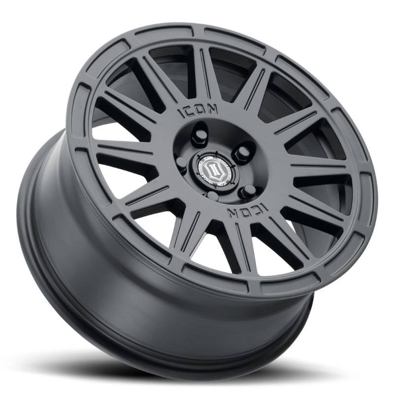 ICON Ricochet 17x8 5x108 38mm Offset 6in BS Satin Black Wheel RICOCHET WHEEL
