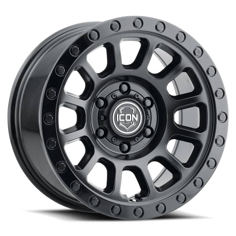 Staying true to the ICON Alloys approach, the Hulse has been engineered to maximize caliper clearance and optimize wheel position for un-hindered suspension travel and steering function. Backspace dimensions and wheel offset have been strategically developed to reduce scrub radius, improving all-around handling and ride quality and making a set of these wheels the perfect complement to an ICON Vehicle Dynamics suspension system. The ICON Alloys Hulse makes a bold statement with its motorsport inspired styling. Hulse features an aggressive concave profile that looks good in the dirt and great in the street. Twelve deep spokes, thick lip and oversized ring bolts will set your rig apart from the rest. Available in aggressive Double Black or eye-catching Silver Machined finishes with fitments available for 6 & 5 lug applications.