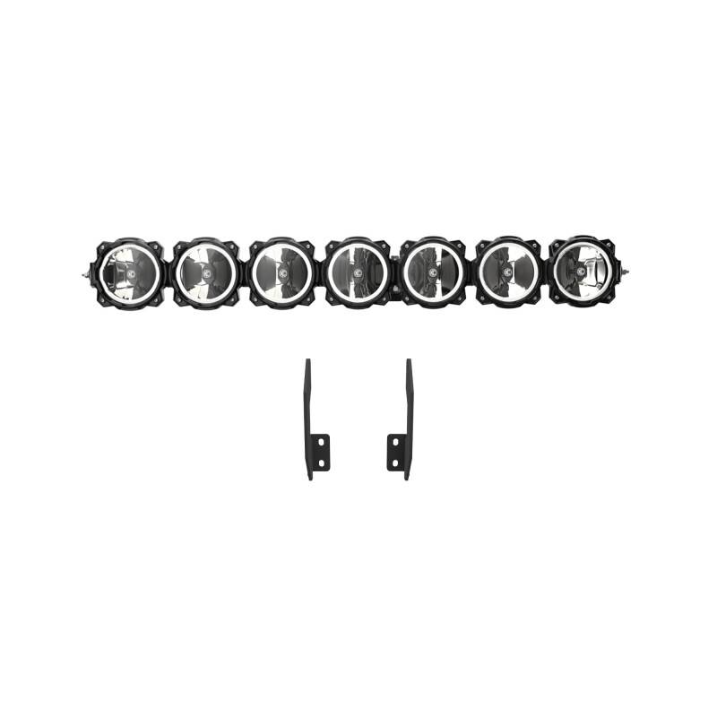 The GEN3 2011-2016 Ford Super Duty Front Bumper 7-Light Gravity LED Pro6 Light Bar Kit is a formidable upgrade for truck enthusiasts. This comprehensive kit pairs our durable 7355 Front Bumper Mount with KC's legendary 7-Light Gravity LED Pro6 Light Bar, offering an unparalleled combination of powerful lighting and rugged construction. MOUNTING BRACKET-Custom Fit: Designed specifically for the GEN3 2011-2016 Ford Super Duty F-250, F-350, F-450, and F-550 models, ensuring a perfect integration. Durable Construction: Crafted from steel with a black textured powder coat for lasting resilience. Easy Installation: Bolt-on design allows for a straightforward setup without any drilling or cutting.45" 7-LIGHT GRAVITY LED PRO6 LIGHT BAR-Advanced GRD Technology: Each light utilizes KC's patented Gravity Reflective Diode (GRD) for exceptional beam shape, performance, and clarity. Mixed Beam Pattern: A combination of Driving and Wide-40 Beam lights provides a comprehensive lighting solution, ensuring both distance and peripheral visibility. Infinity Ring System: Patented design offers flexibility and adjustability, catering to your specific lighting requirements. Race-Tested Durability: Inspired and tested in desert racing, offering unmatched robustness and performance. WHAT'S IN THE BOX-(1) 7-Light Gravity LED Pro6 45" Light Bar-(1) Light Bar Mount for Gravity LED Pro6 7-Light Bar Front Bumper GEN3 2011-2016 Ford Super Duty (for driver and passenger sides)-(7) Gravity Pro6 Light Cover Black / Yellow KC Logo-(1) Plug-n-Play Wiring Harness and Switch. FITMENT-GEN3 2011-2016 Ford Super DutyElevate your Ford Super Duty's lighting capability with this all-in-one kit, designed for those who demand the best in off-road performance and durability. Illuminate your path with confidence and style, thanks to the unparalleled performance of the 7-light Gravity LED Pro6 Light Bar.